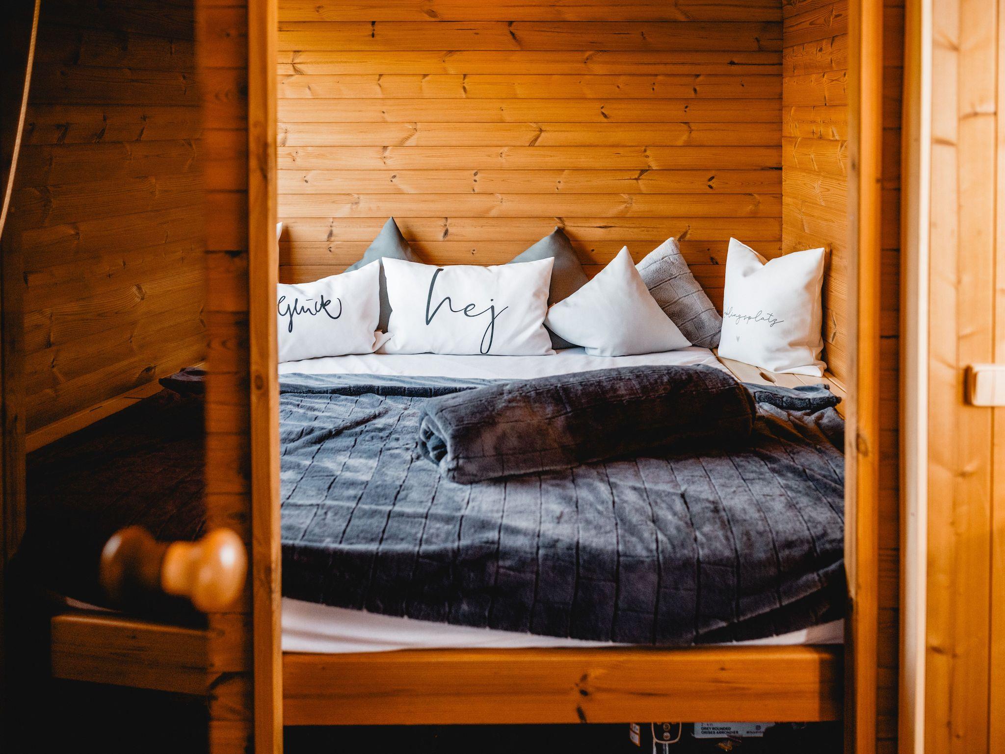 • Behagliche Schlafempore mit komfortablem Bett (160 x 200 cm), erreichbar über eine Treppe