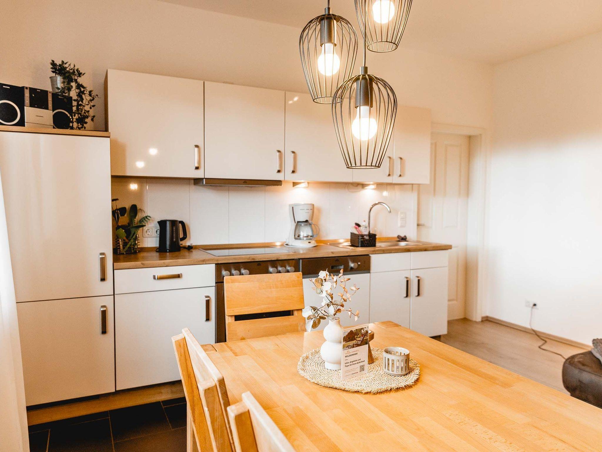 Die Wohnung Landlust befindet sich im EG unseres Haupthauses und bietet auf 65 qm Platz für bis zu fünf Personen.Aufgeteilt ist die Wohnung in zwei Schlafzimmer (1 SZ mit Doppelbett und 1 SZ mit Etagenbett, wo eine dritte Matratze herausgezogen werden kann), einem gemütlichen Wohn/Essbereich mit komplett ausgestatteter Küchenzeile, Dusche/WC, Abstellraum sowie eine Terrasse.