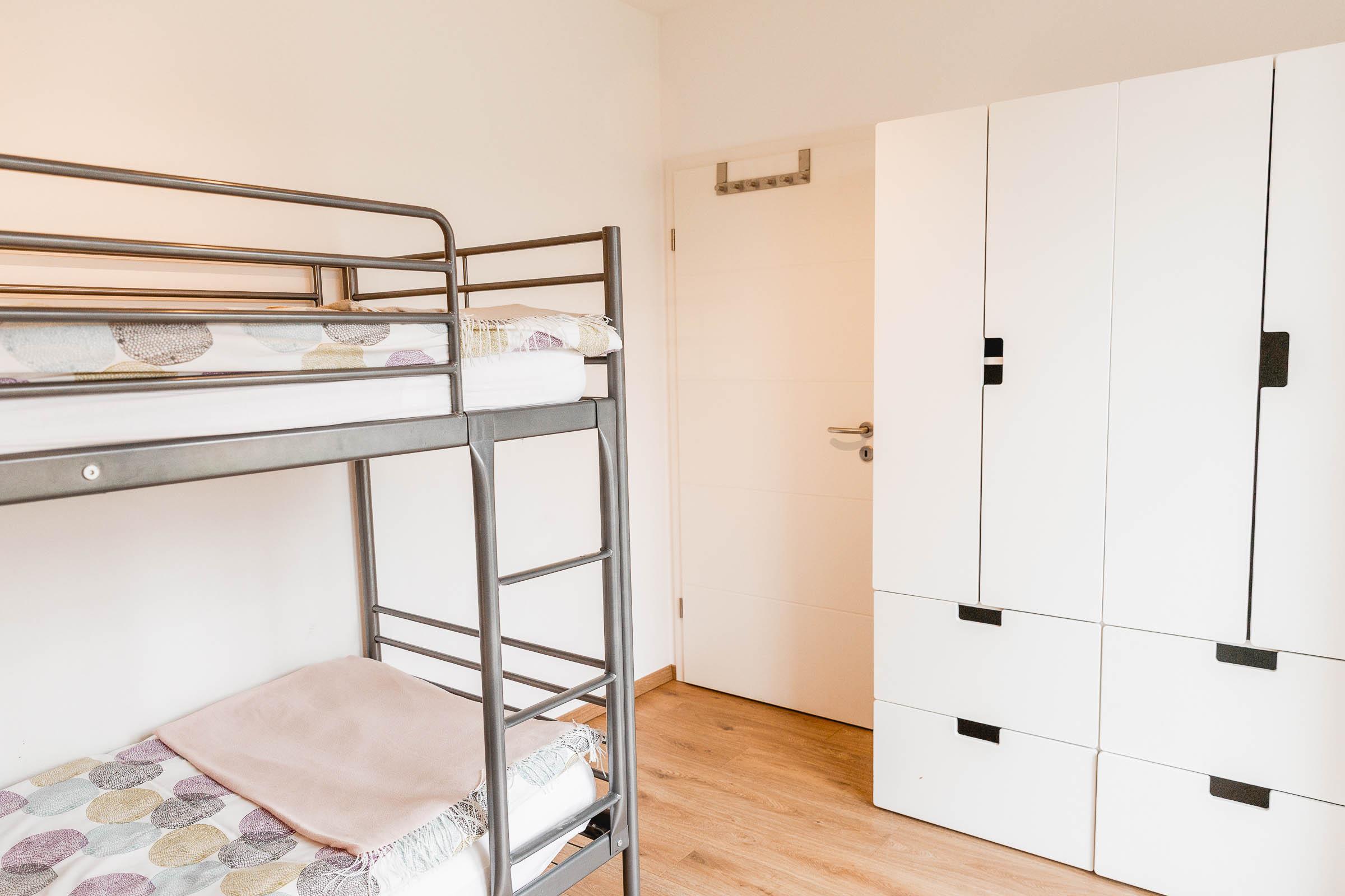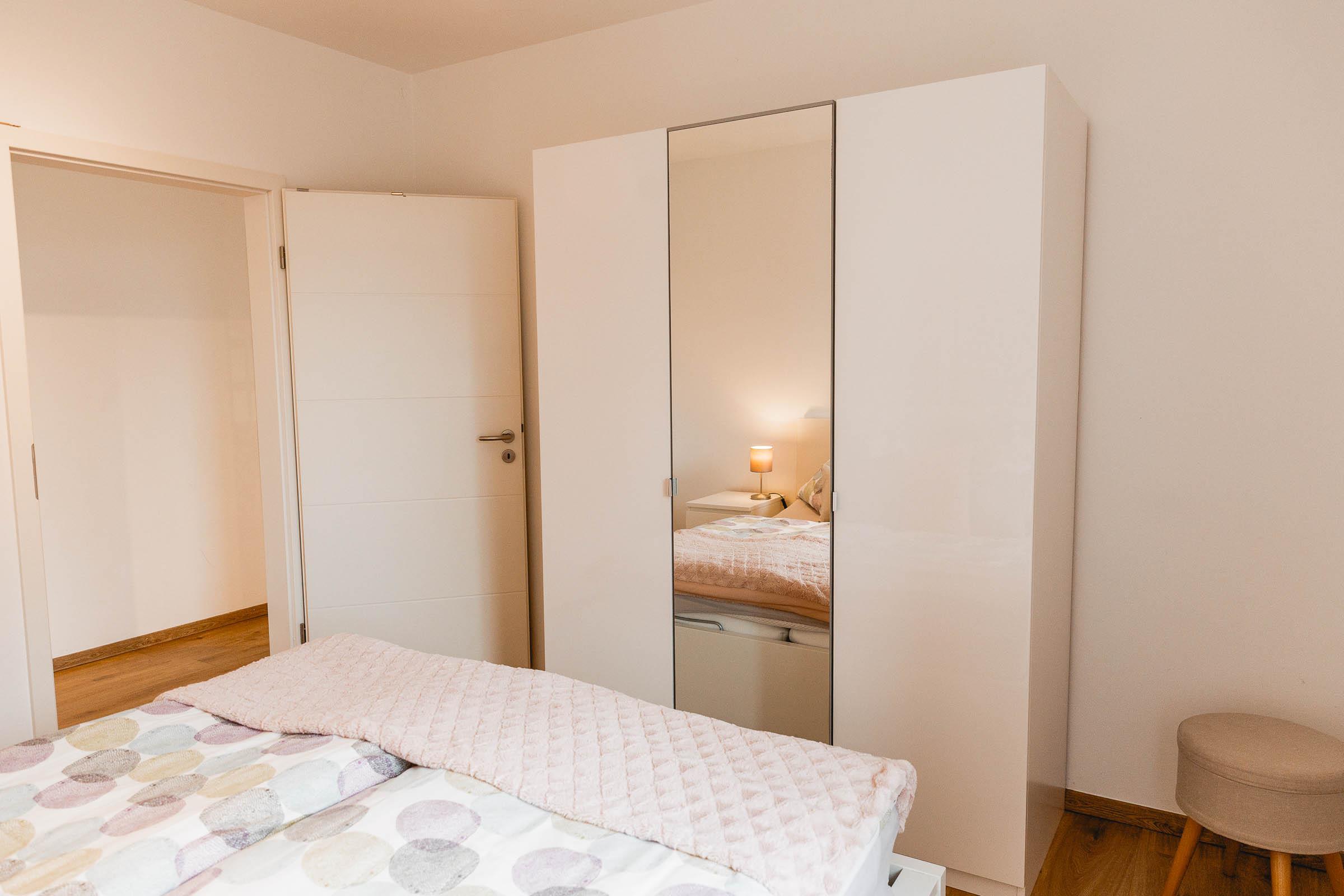 Die Wohnung Wiesenblick besteht aus einem Wohn/Essbereich, 2 Schlafzimmer (1 Schlafzimmer mit Ehebett und 1 Schlafzimmer mit Einzelbett ausziehbar zum Doppelbett), Dusche/WC und Abstellraum.