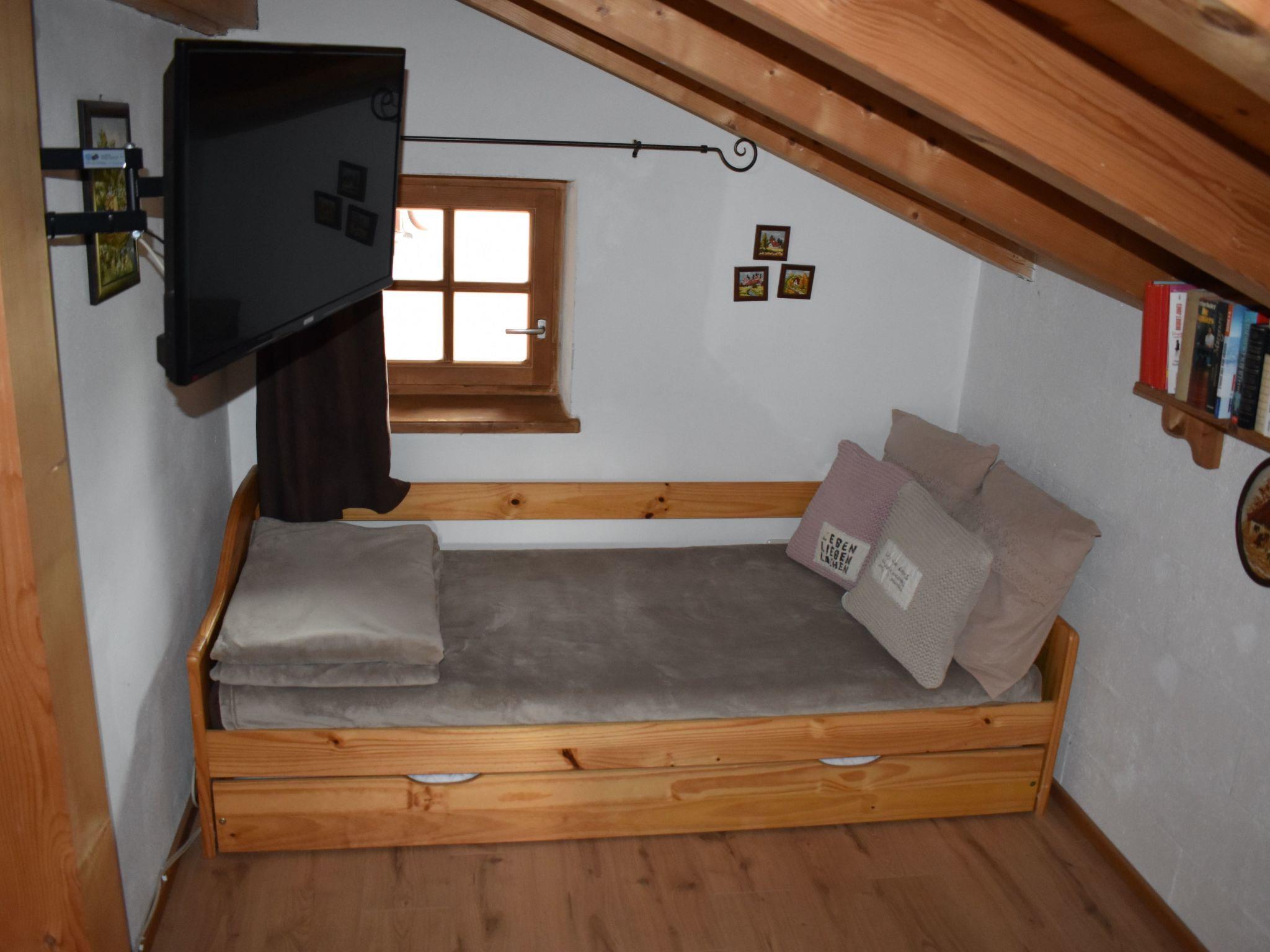 The interior design of the 54m² flat is high-quality and well thought-out. On the ground floor you will find a spacious living room with flat screen TV, radio, a dining area and a cosy corner sofa. The bathroom with shower and WC was renovated in 2021 and offers modern comfort. The sleeping area on the upper floor is accessible via a staircase and has a double bed and a single bed, ideal for 2 people plus an extra bed for 1 child if a shared bedroom is accepted. A small television completes the comfort in the bedroom.