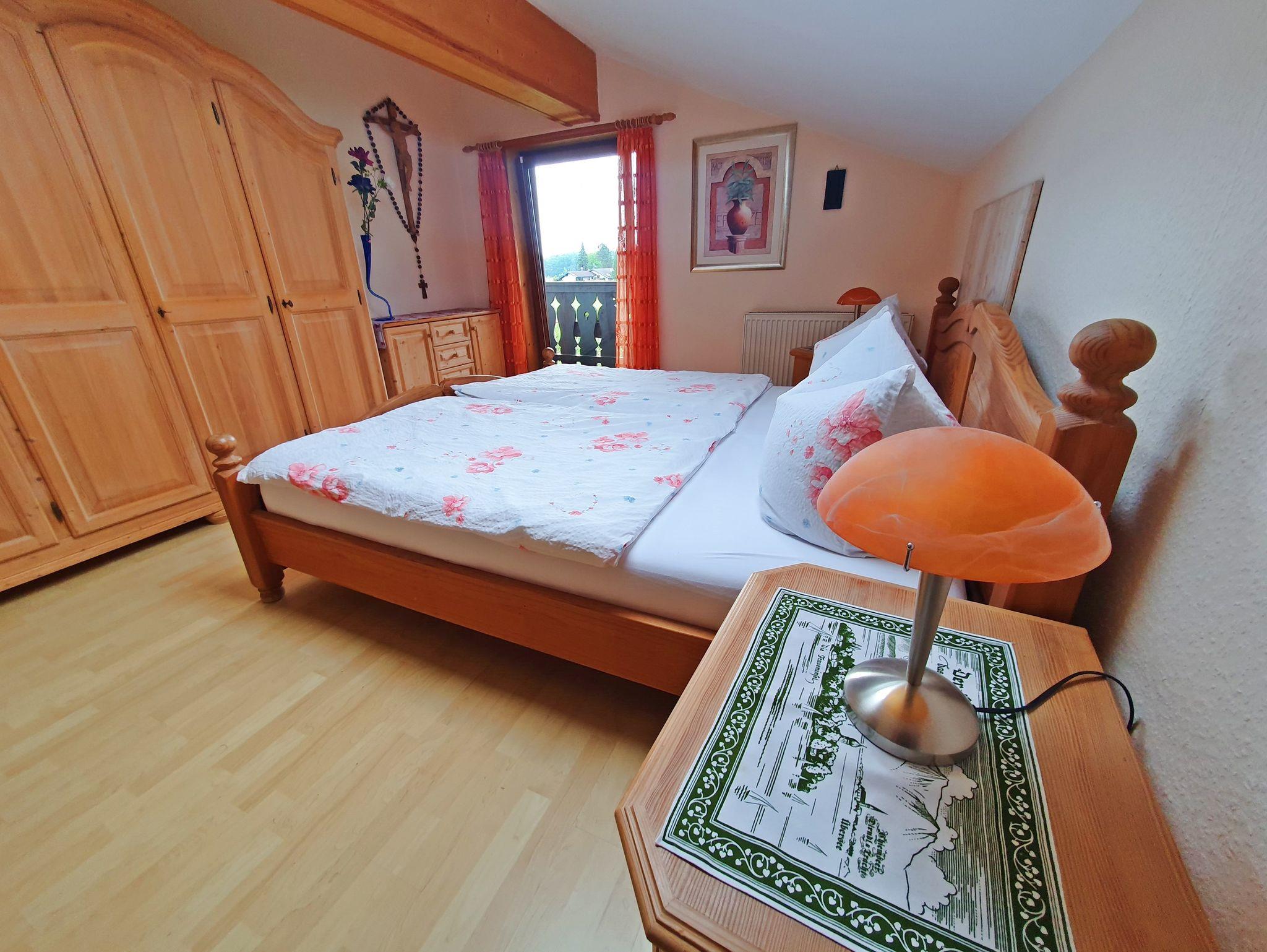 Gemütlich eingerichtetes Doppelzimmer ca. 22 qm mit Doppelbett und Ausziehcouch, DU/WC/Bad auf der Etage.