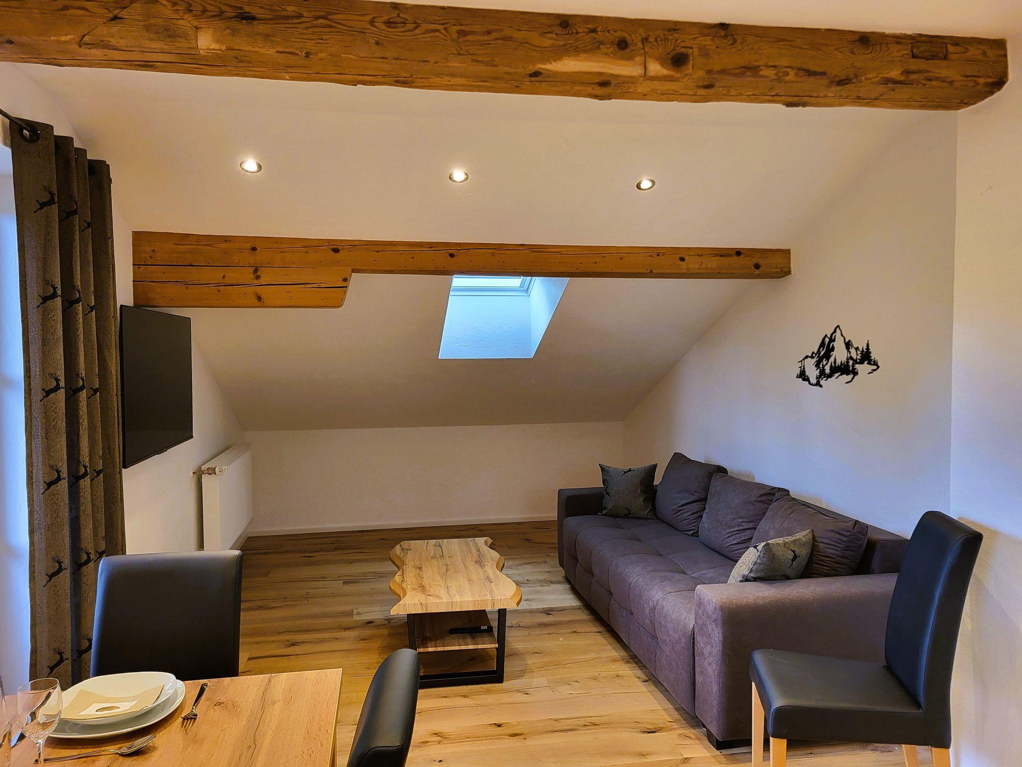 Die Ferienwohnung unter dem Dach ist mit einer großzügigen, gemütlichen Wohnküche im alpenländlichen modernen Stil. Ohne Frühstück!!!