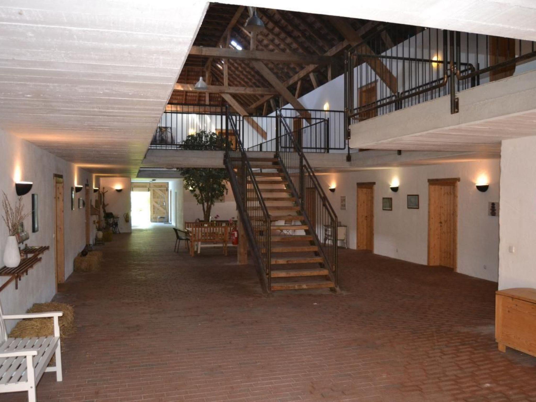 In addition to your own terrace, large parts of the 12,000 m2 farm property with its orchards and green areas are available for shared use free of charge next to the village square in the centre of the former barn. Free parking is available directly in front of the house.