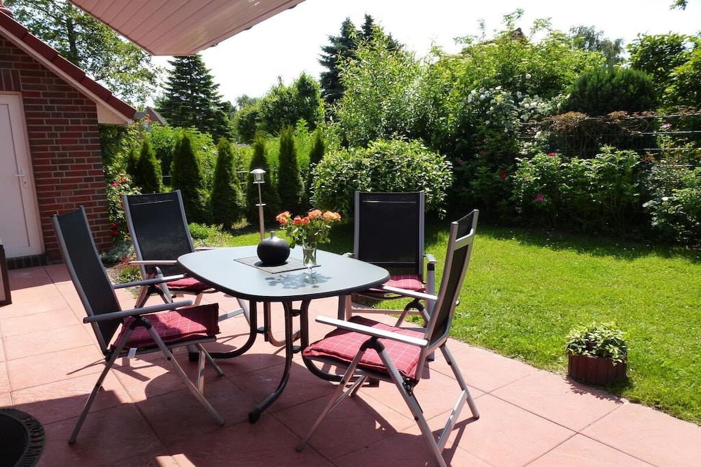Mit viel Liebe wurde die Ferienwohnung Greetsieler Deich inklusive großem Garten, Außensauna eingerichtet. Hunde sind hier herzlich willkommen. Der gemütliche Wohnraum ist mit Sat-Flachbildschirm-TV, DVD-Player, Stereoanlage, Bücher und Spielen, sowie kostenlosem WLAN ausgestattet In der komfortablen integrierten Küche macht das Kochen Spaß. Genießen Sie Ihre Speisen im Essbereich unserer Ferienwohnung mit Blick über den Garten auf den Deich. Die Ferienwohnung verfügt über 1 Schlafzimmer mit einem Boxspringbett der Hotelklasse und 1 Schlafzimmer mit 2 Einzelbetten, Bad und Gäste-WC. Garten mit möblierter Terrasse sowie Saunahaus stehen zur alleinigen Nutzung zur Verfügung.