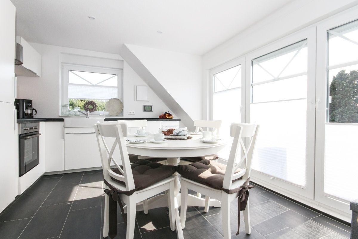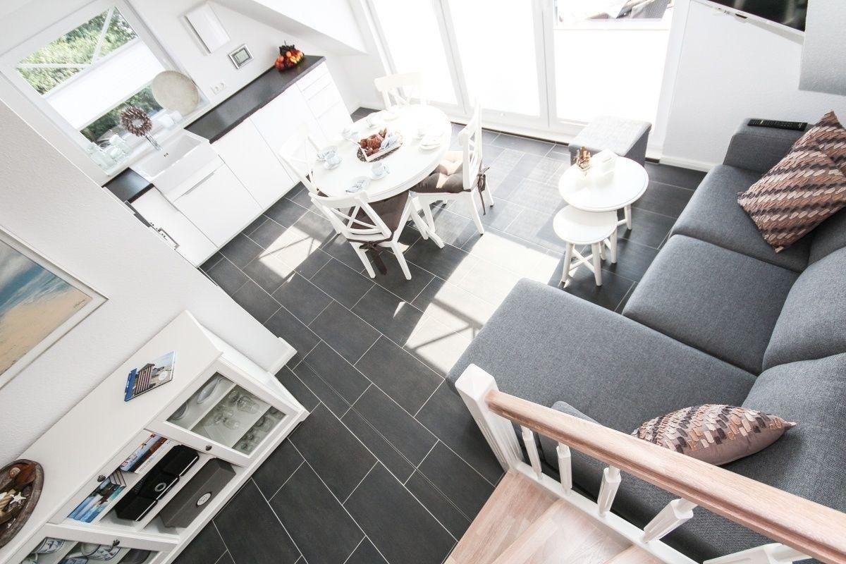 Die komfortabel eingerichtete Ferienwohnung Adams Kajüte erstreckt sich über zwei Ebenen (1.OG und DG) und bietet mit zwei separaten Schlafzimmern ausreichend Platz für einen erholsamen Urlaub an der Nordsee. Im Wohn- und Essraum befindet sich eine Küchenzeile, die alle benötigten Dinge beherbergt.