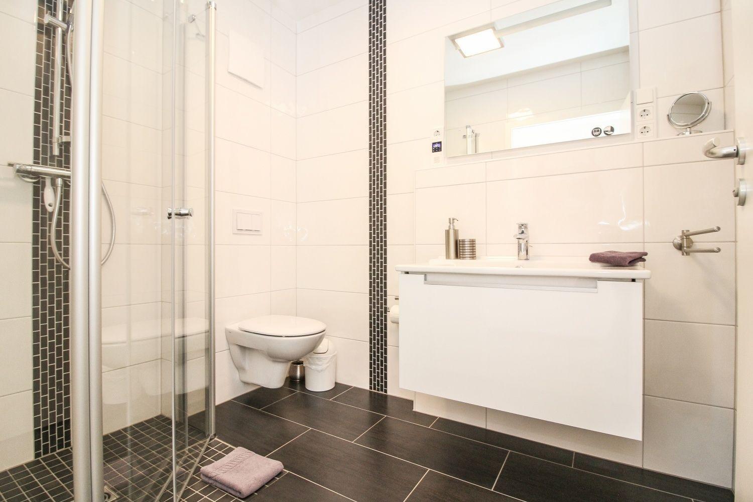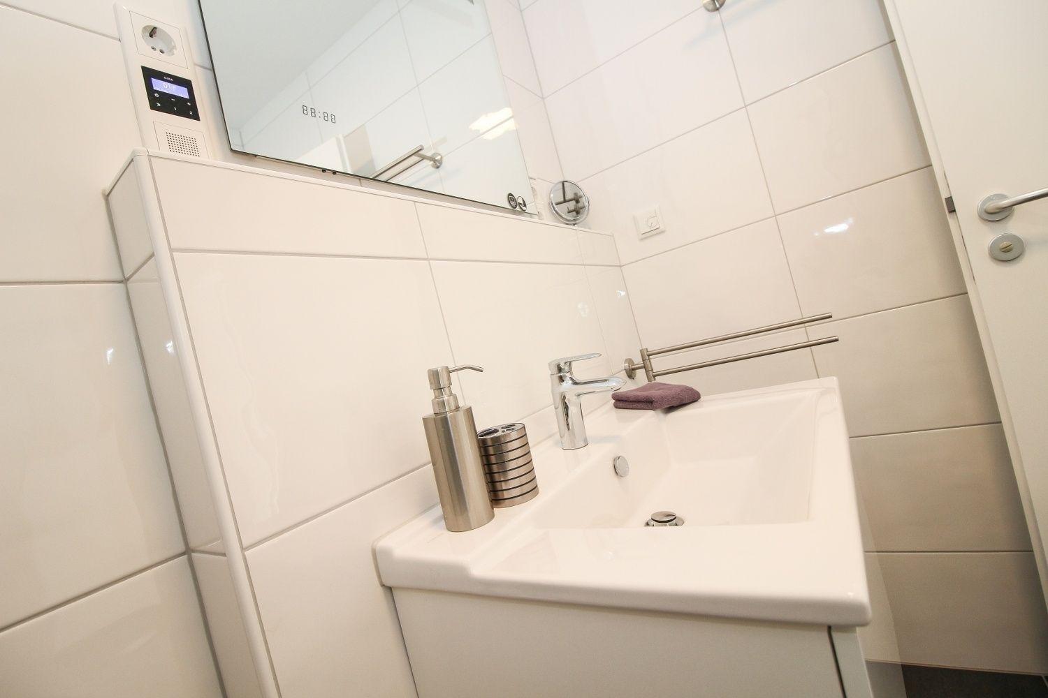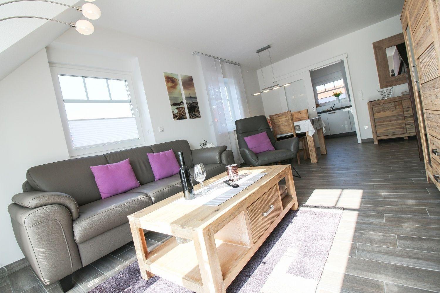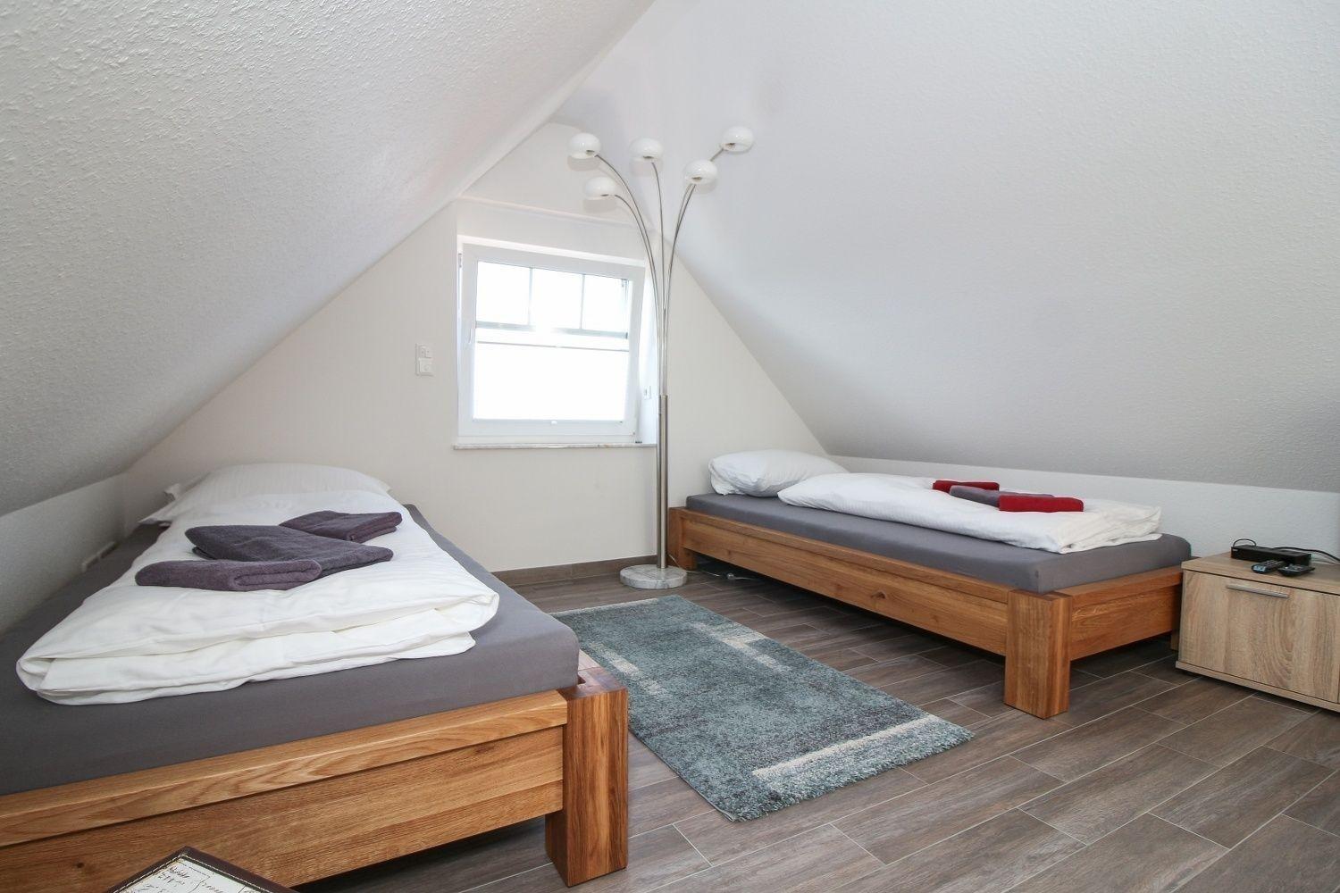 Die Wohnung verfügt über eine komplett eingerichtete, separate Küche mit sämtlichen Elektrogeräten (Spülmaschine, Waschmaschine, Nespresso-/Kaffeepad-/Filterkaffee-Maschine etc.), einem Wohn-/Essbereich, einem Schlafzimmer mit Doppelbett und einem Bad mit ebenerdiger Dusche. Im Dachgeschoss befindet sich ein weiteres Schlafzimmer mit zwei Einzelbetten (je 100x200cm). Außerdem ist ein zweites WC im Dachgeschoss vorhanden.