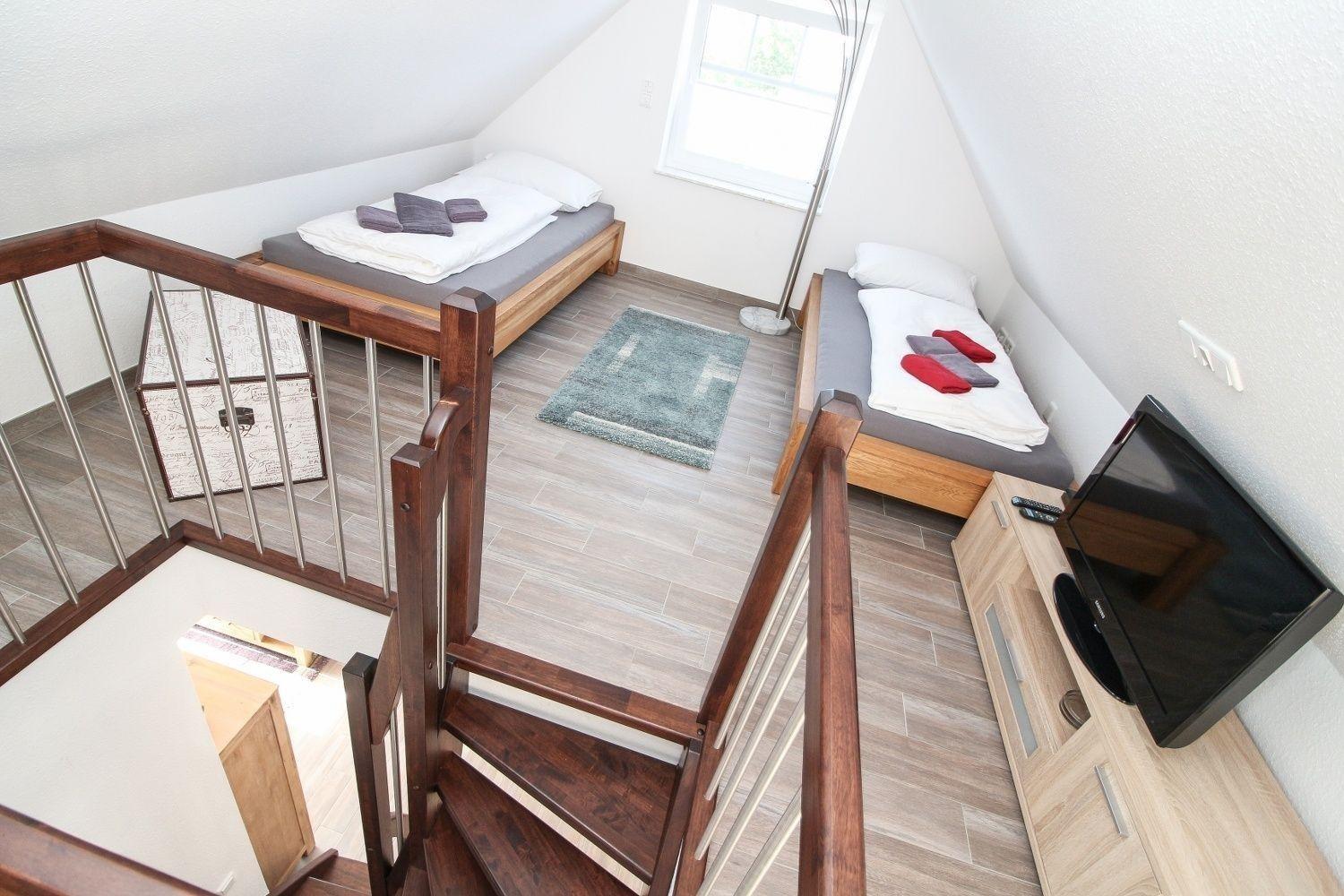 Hochwertig ausgestattete Ferienwohnung im Obergeschoss über zwei Ebenen für bis zu 4 Personen.