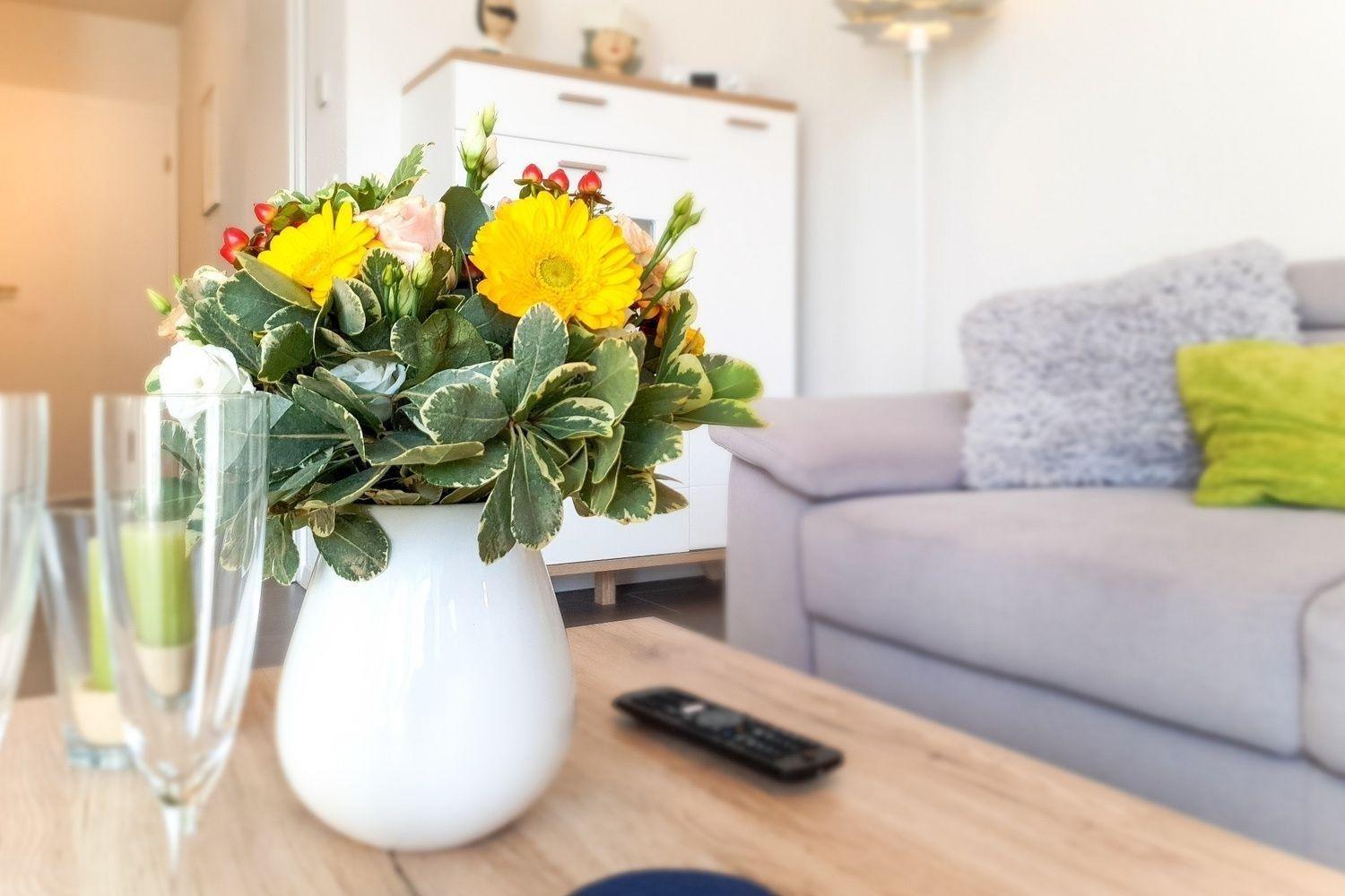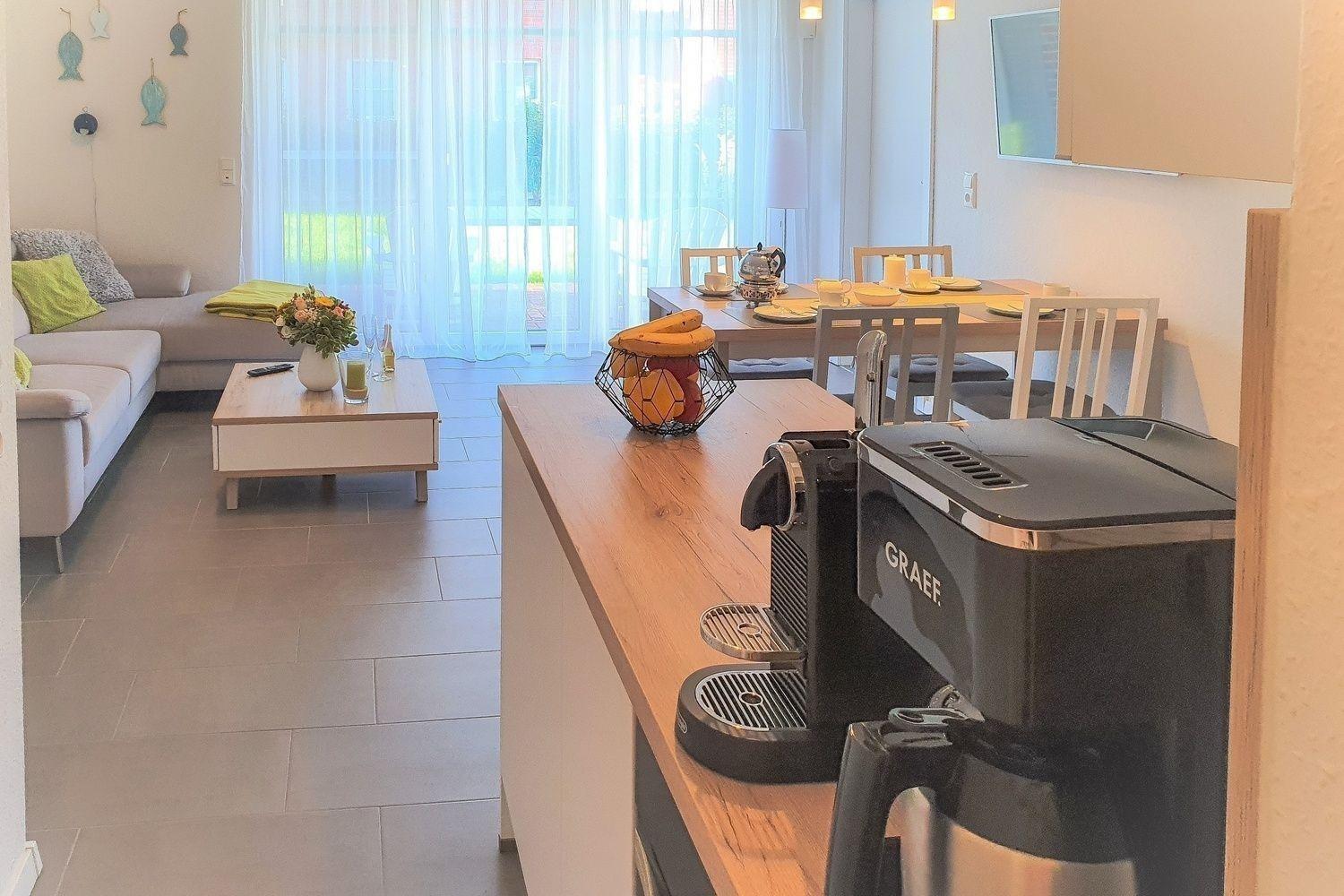 Die ebenerdige Ferienwohnung SiebenSiel sorgt mit ihrer modernen Inneneinrichtung schon beim Einzug für Urlaubsgefühle.