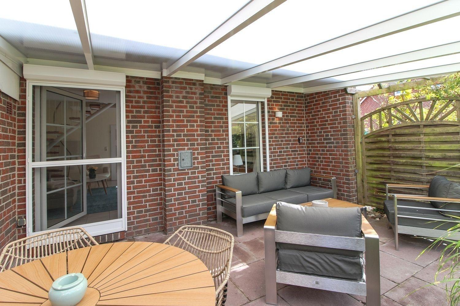 Auch bei „Schietwetter“ bietet die überdachte Terrasse Schutz – hier sitzt du stets im Trockenen.