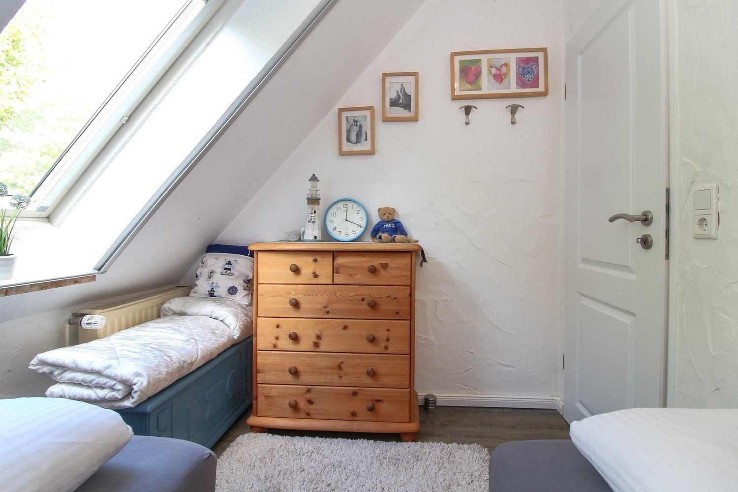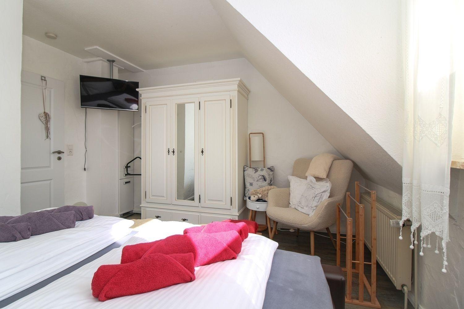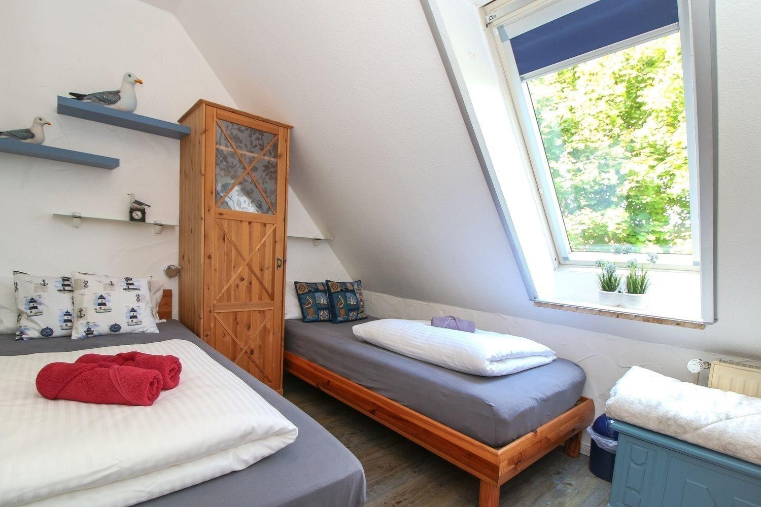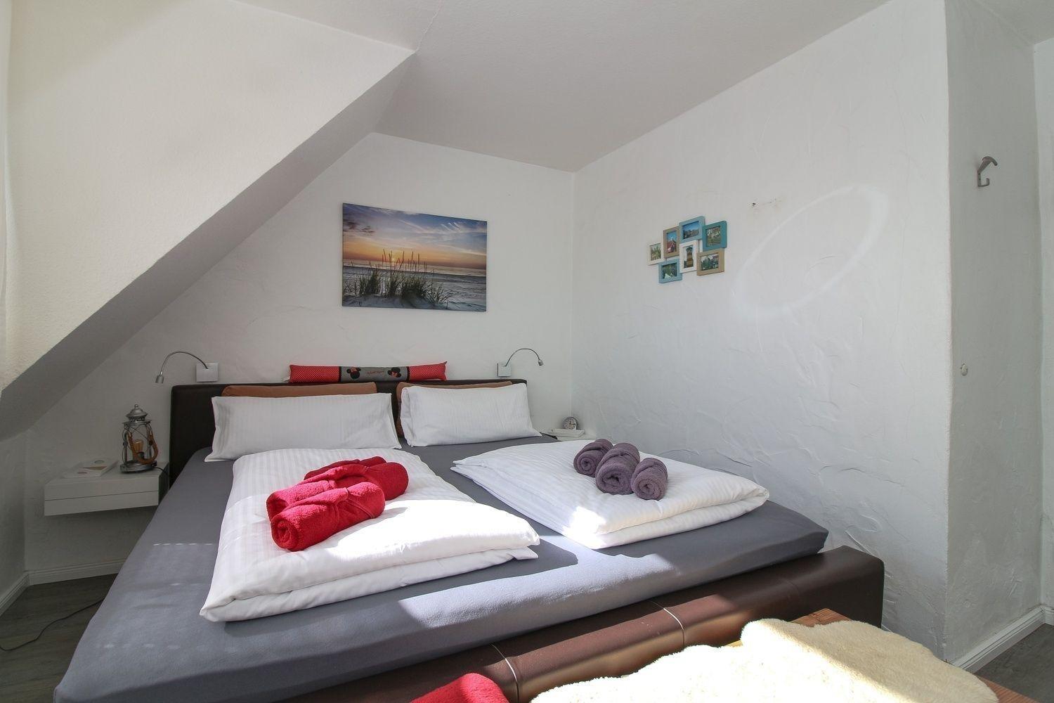 Mit zwei Schlafzimmern ist bei uns genug Platz. Das große Schlafzimmer ist zusätzlich mit einem TV und einer Leseecke ausgestattet. Der große Kleiderschrank bietet Ihnen ausreichend Platz. Das kleine Schlafzimmer verfügt über 2 Einzelbetten, Kleiderschrank und Kommode.