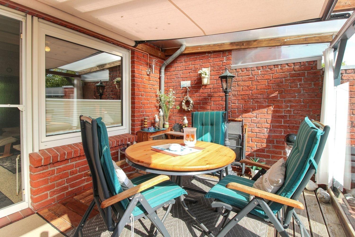 Von der überdachten und windgeschützten Terrasse haben Sie einen schönen Blick auf die neuen Greetsieler-Grachten und können hier den Tag zu einem wunderschönen Abend werden lassen.