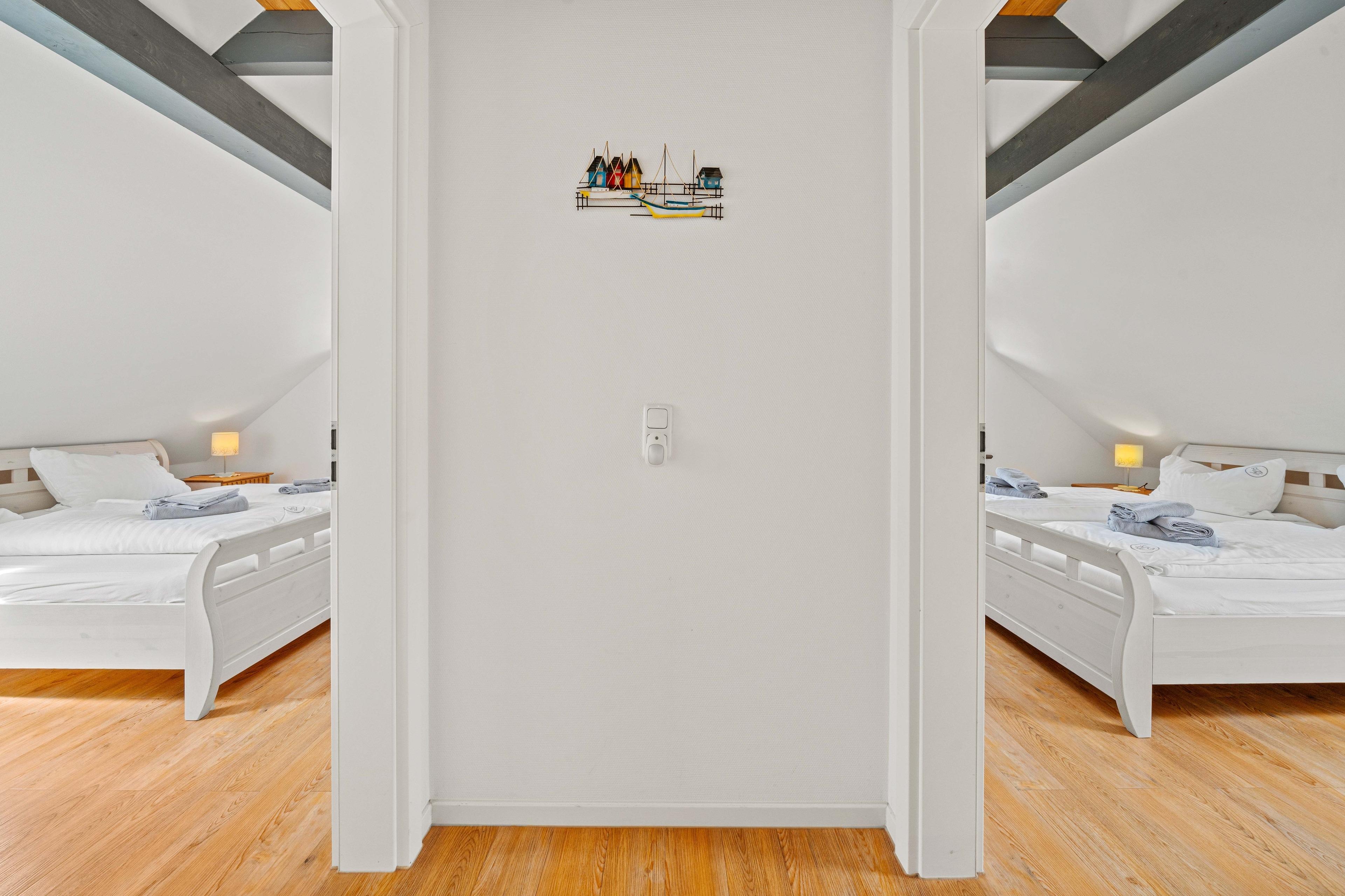 Mitten im historischen Hafen, direkt am Alten Deich 25, liegt die stilvolle Ferienwohnung „Bummert am Hafen Nr. 3“ – eine gemütliche Unterkunft im charmanten Dreigiebelhaus mit nur drei Wohneinheiten. Auf großzügigen 90qm erwartet Sie ein Ort zum Ankommen und Wohlfühlen, ideal für bis zu vier Personen. Die Wohnung besticht durch ihren hellen, offenen Wohnbereich, der mit einem gemütlichen Kamin, einer großen Wohnlandschaft, einem Esstisch und einer modernen Einbauküche ausgestattet und somit das Herzstück der Wohnung ist. Weiterhin bietet die Wohnung im Obergeschoss zwei liebevoll eingerichtete Schlafzimmer mit Doppelbetten. Besonders komfortabel für den gemeinsamen Urlaub mit der Familie oder Freunden sind die beiden Badezimmer, wovon eines mit ebenerdiger Dusche und das andere mit einer Badewanne und einer zusätzlichen Dusche ausgestattet ist. Zur Wohnung gehören außerdem eine überdachte Terrasse, die auch bei norddeutschem Wetter ein geschützter Ort zum Verweilen ist sowie ein PKW-Stellplatz direkt am Haus. Auch ein gemeinschaftlich nutzbarer Waschraum mit Waschmaschine und Trockner ist vorhanden. Somit ist die Wohnung „Bummert am Hafen Nr. 3“ die perfekte Adresse für alle, die Ruhe, Komfort und die Nähe zum Wasser schätzen.
