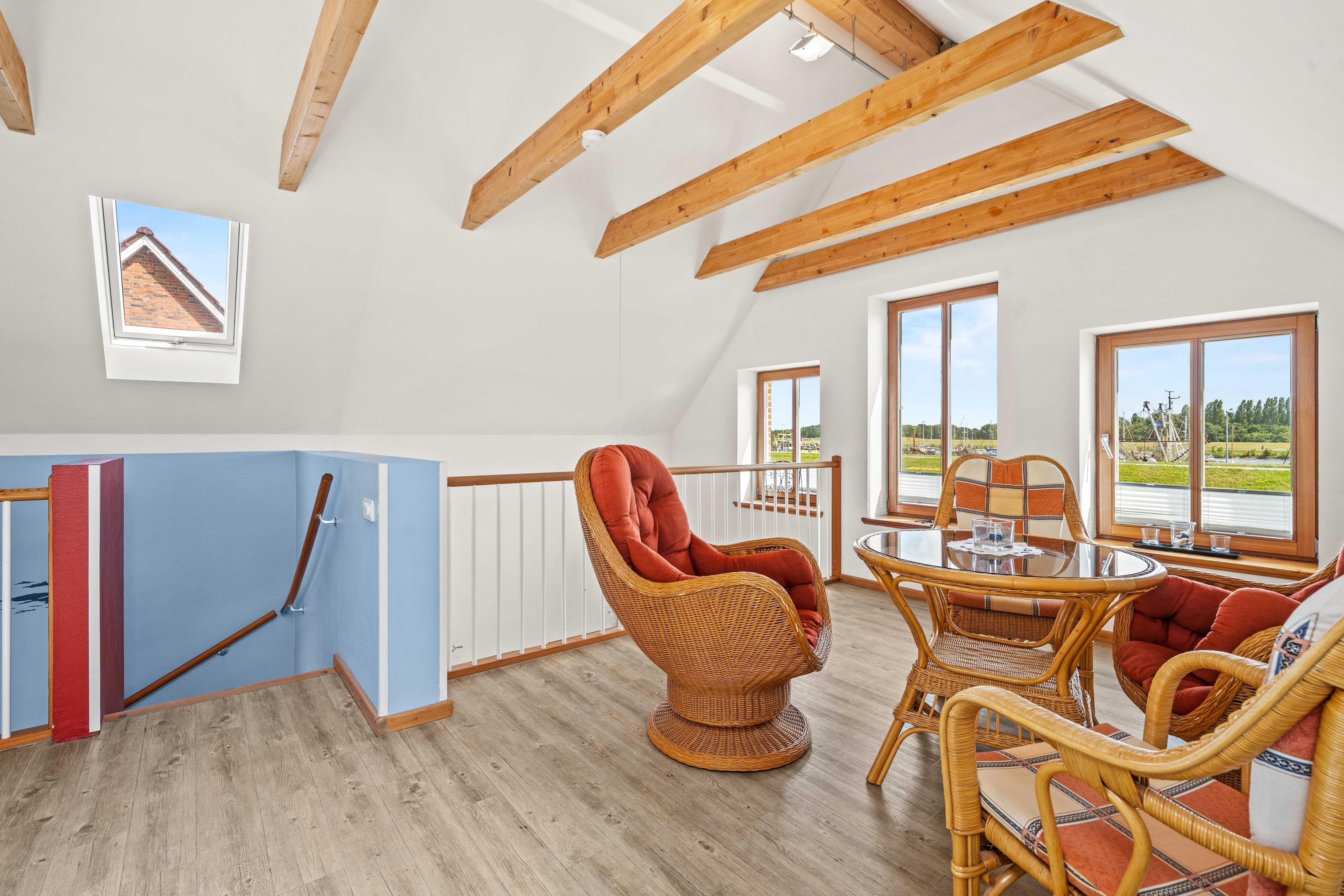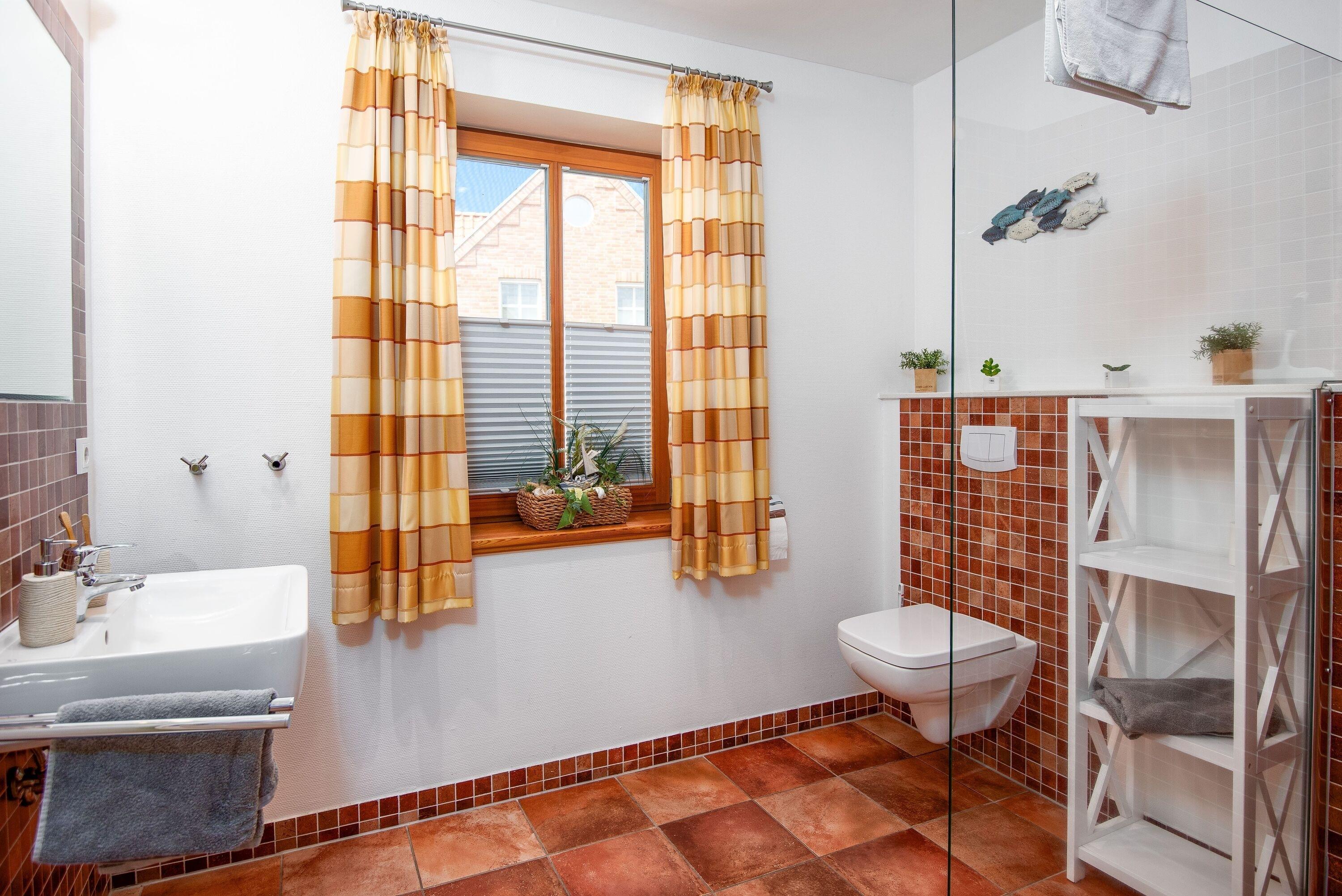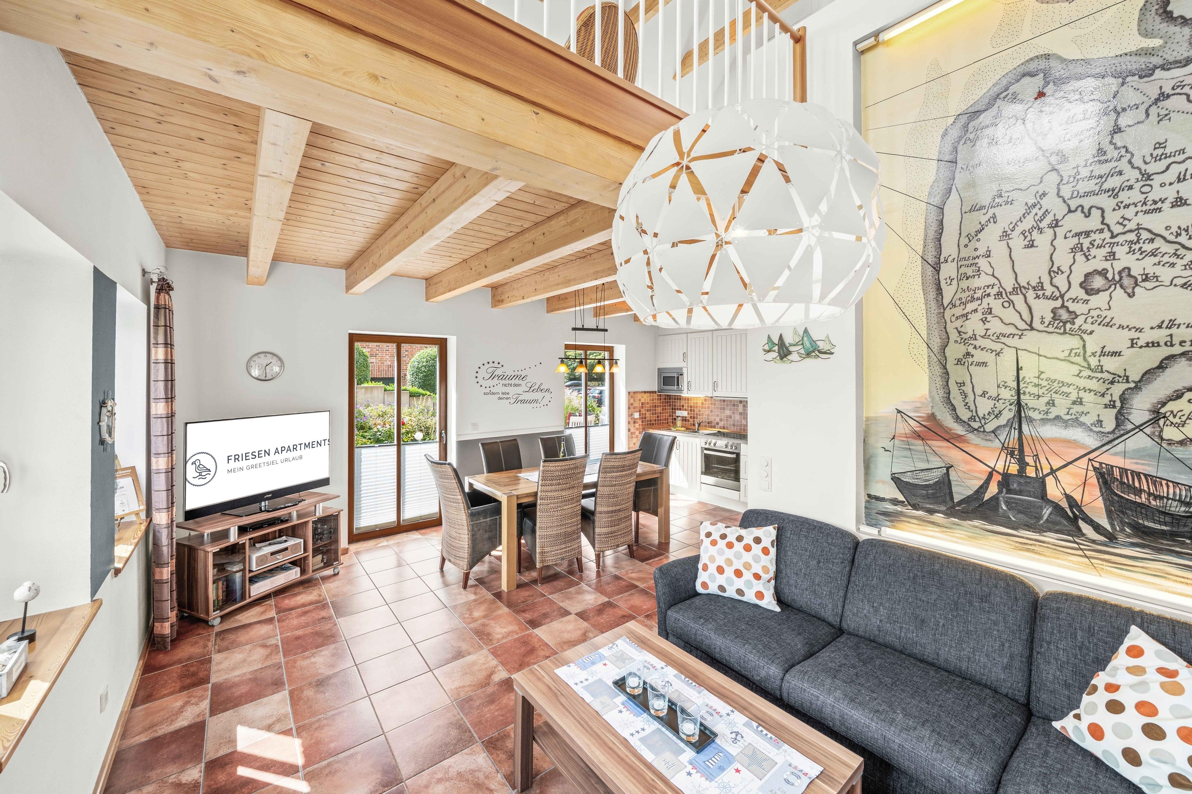 Das liebevoll eingerichtete "Ferienhaus am Alten Deich" in zentraler Lage von Greetsiel bietet Ihnen die perfekte Kombination aus Komfort, Gemütlichkeit und maritimem Flair. Direkt am Hafen gelegen, genießen Sie hier den besonderen Charme des historischen Fischerdorfs – mit Blick auf Krabbenkutter, den Yachthafen und das bunte Treiben am Deich. Auf 95qm bietet das Haus viel Platz für bis zu sechs Personen. Im Erdgeschoss, welches behindertengerecht angelegt ist, befinden sich ein heller und gemütlicher Wohnbereich mit Esstisch, Sitzmöglichkeiten und einer voll ausgestatteten Einbauküche. Weiterhin bietet es ein Schlafzimmer mit Doppelbett sowie ein Badezimmer mit Dusche – ideal auch für Gäste mit eingeschränkter Mobilität. Im Obergeschoss erwarten Sie zwei weitere Schlafzimmer (eines mit Doppelbett und eines mit Einzelbetten) sowie ein zweites Badezimmer, was den Urlaub mit der Familie oder Freunden besonders komfortabel macht. Die mit gemütlichen Sitzmöglichkeiten ausgestattete Galerie lädt zum Entspannen ein und schenkt Ihnen einen traumhaften Ausblick auf den Hafen. Die Kombination aus zentraler Lage und einem eigenen Garten mit Terrasse und privatem Parkplatz macht das Haus zu einem idealen Ausgangspunkt für erholsame Tage an der Nordsee.
