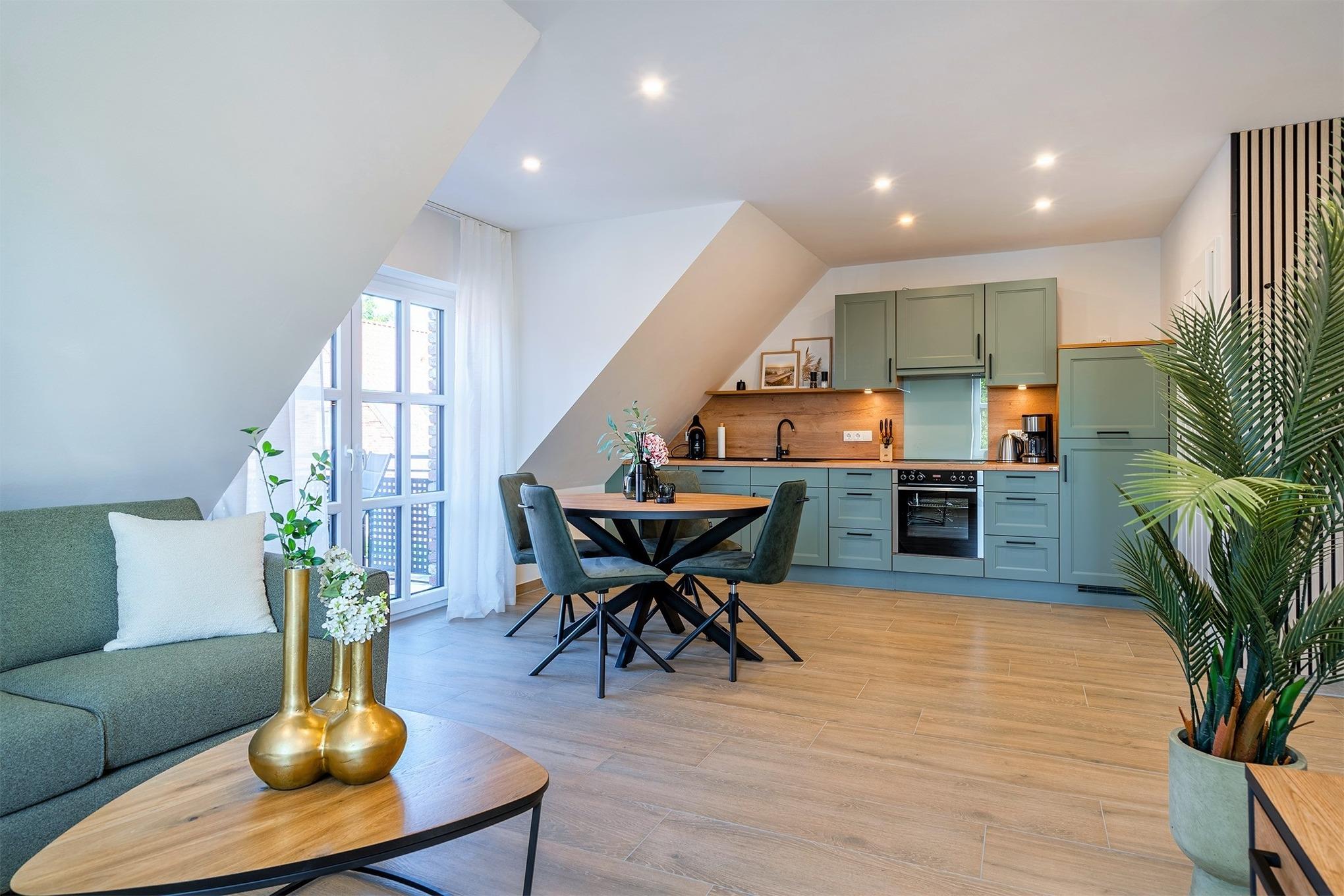 Im Haus "FriesenKOJE" können wir Ihnen vier Wohneinheiten anbieten. Sollten Sie mit mehr als 2 Personen reisen, können die weiteren Wohnungen zusätzlich gebucht werden.
