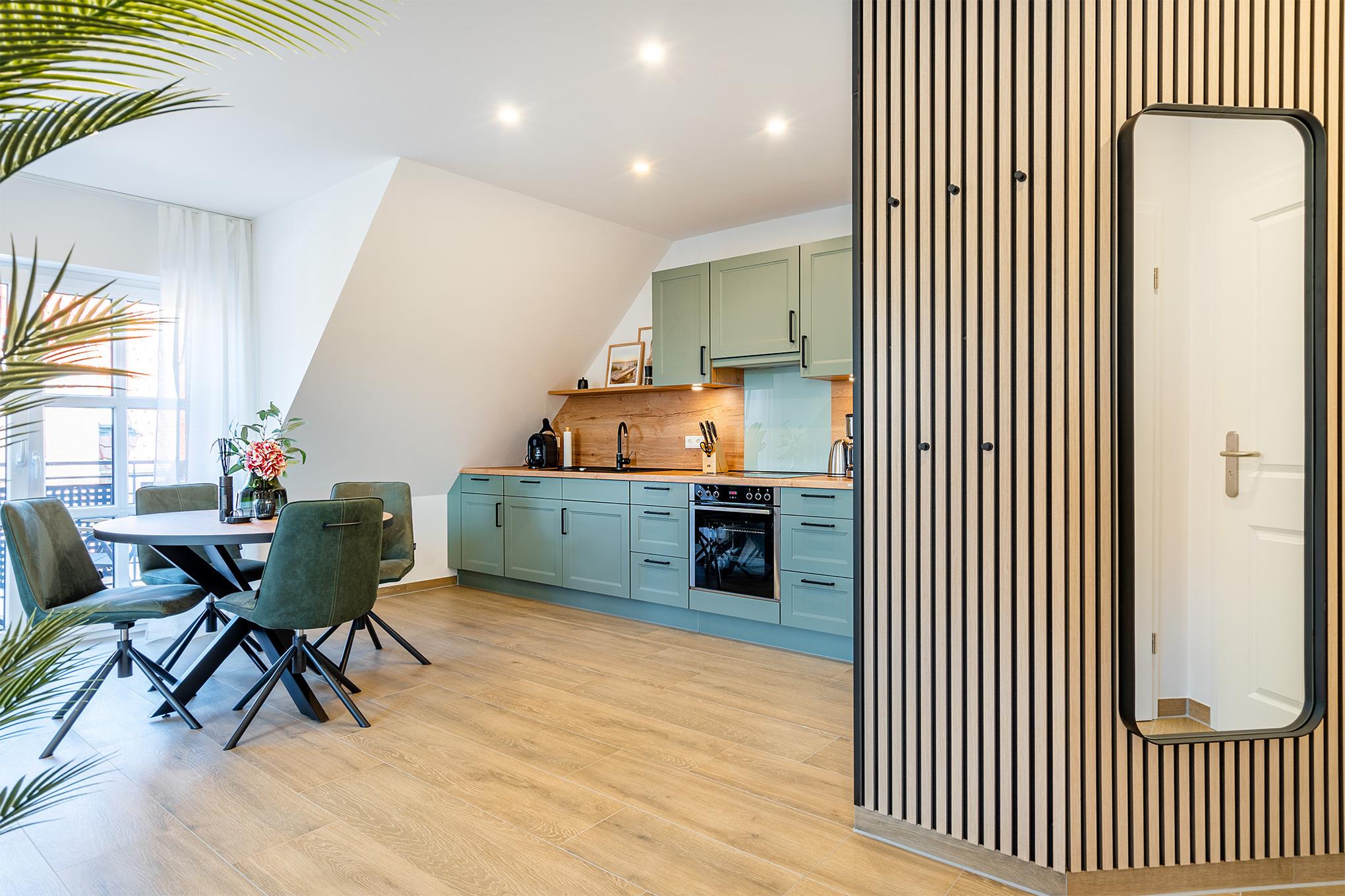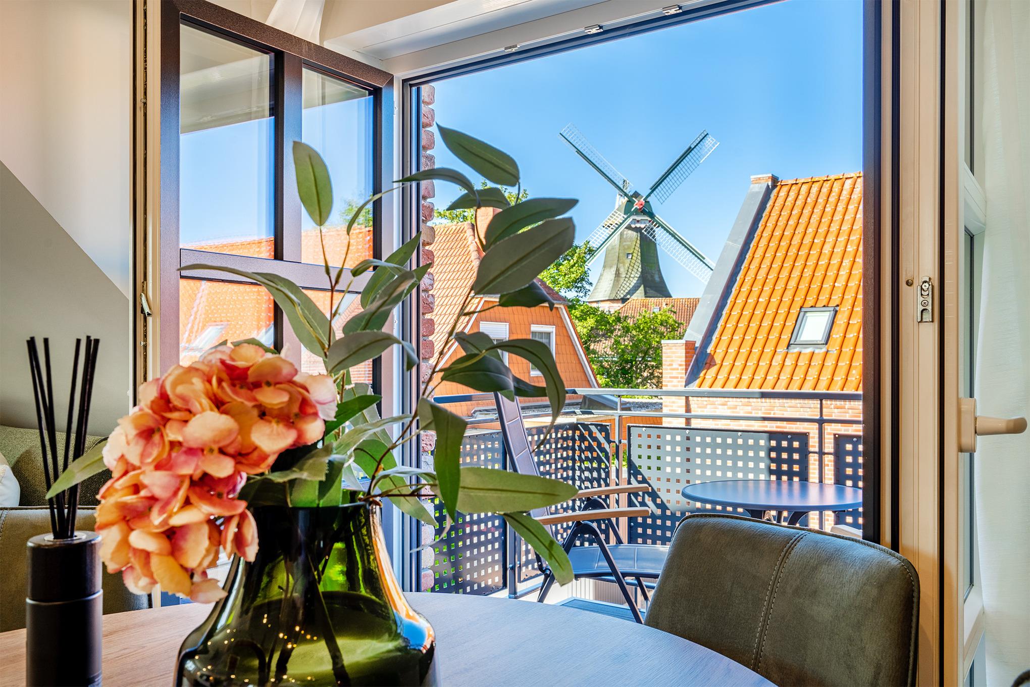 Seit Juni 2023 verbringen Sie Ihren Urlaub in der neuen Ferienwohnung FriesenKOJE 3 - mit direktem Blick auf die "grüne Mühle". Die moderne und hochwertig eingerichtete Wohnung verfügt über eine voll ausgestattete Küche, einen geräumigen Wohnraum und ein Tageslichtbad mit Fußbodenheizung. Genießen Sie Ihre freie Zeit auch auf den komfortablen Balkonmöbeln in ruhiger Lage in der Edzard-Cirksena-Straße.