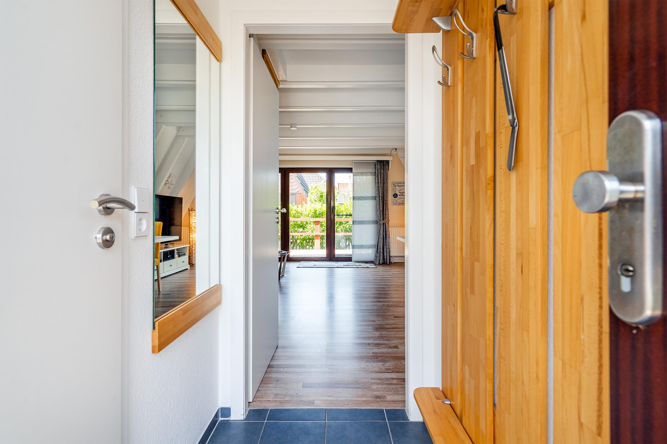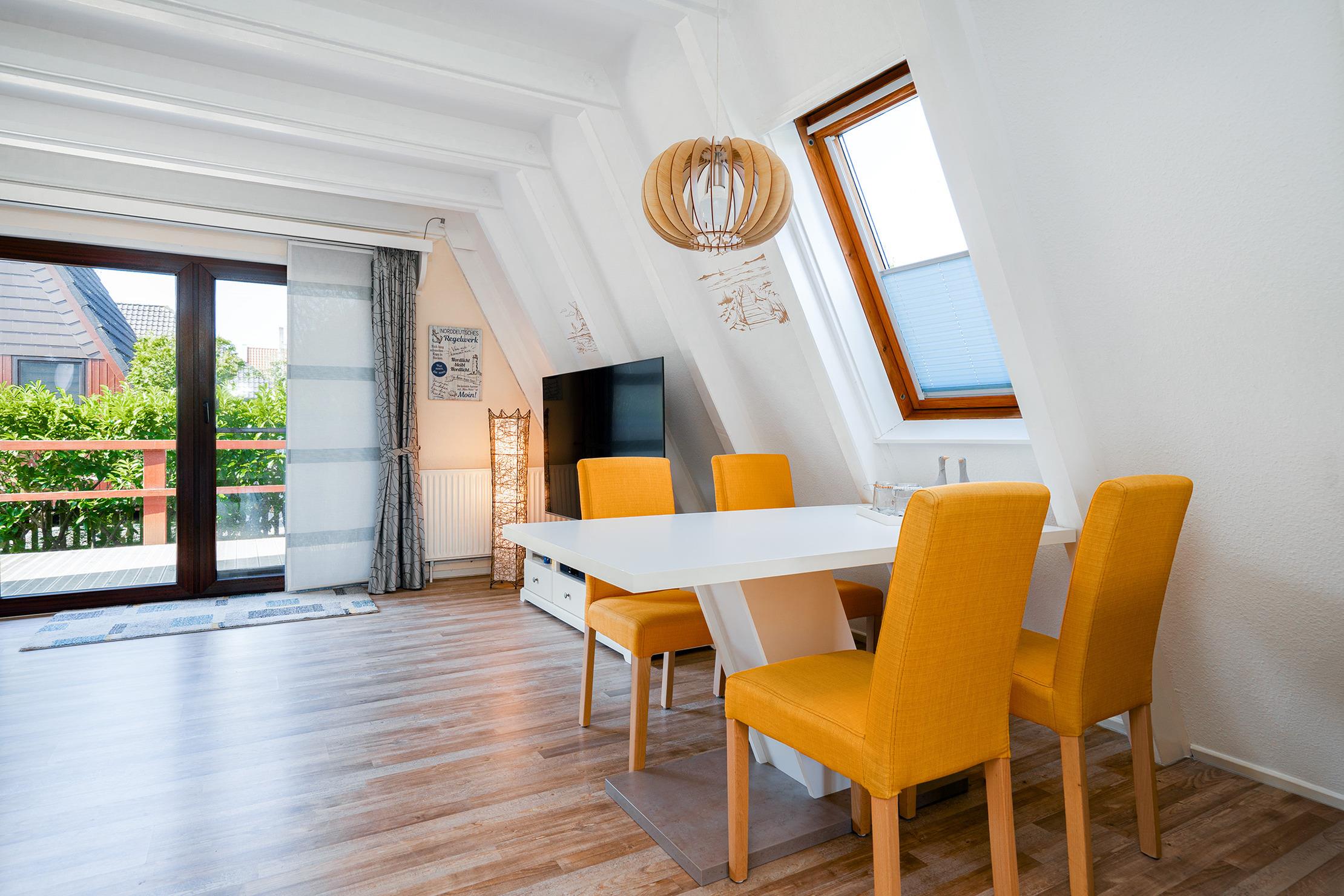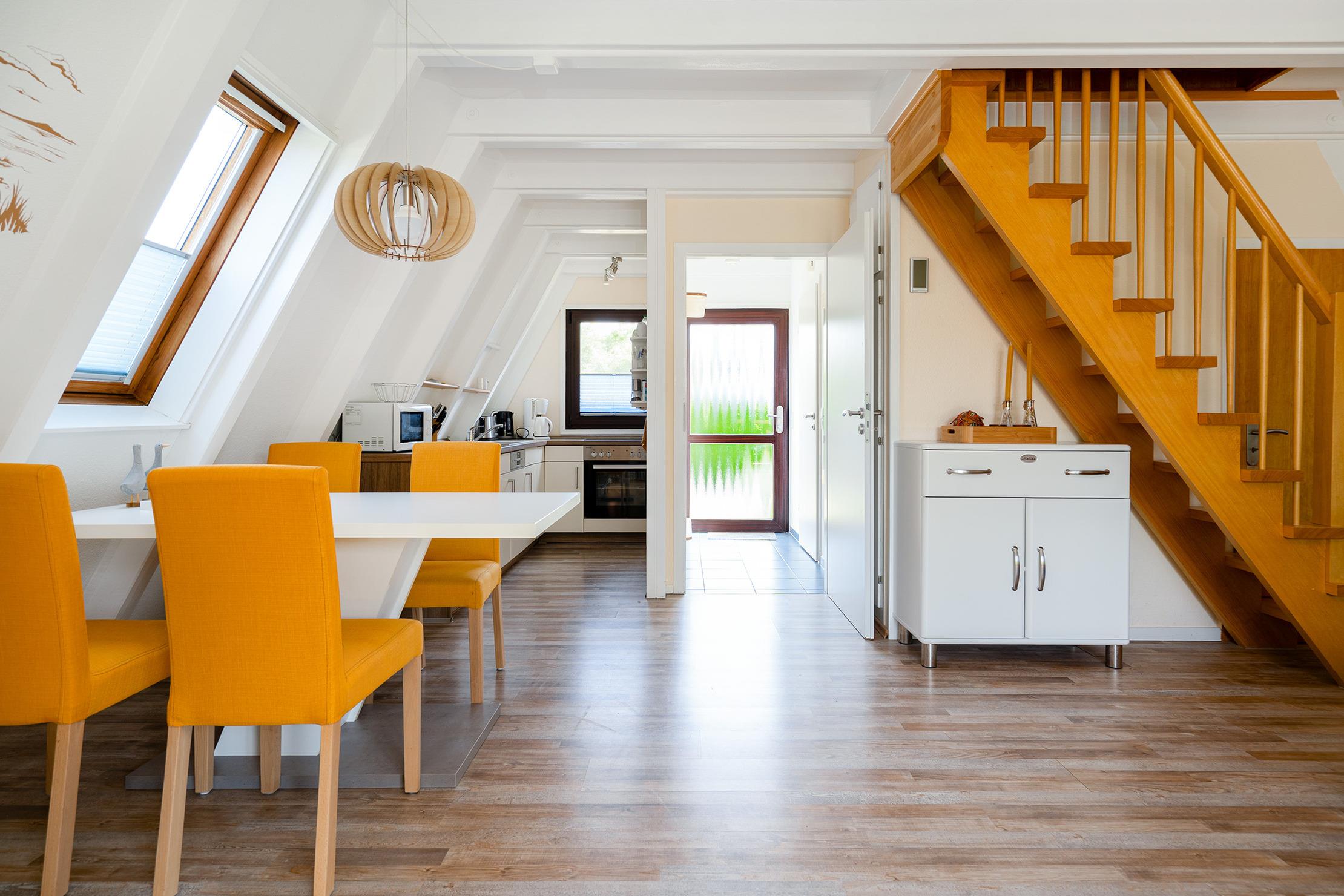 In der ruhigen Nordseestraße, nur wenige hundert Meter vom Deich entfernt, erwartet Sie das liebevoll eingerichtete Ferienhaus „Hänsel und Greetsiel“ – ein charmantes Nurdachhaus, das norddeutsche Gemütlichkeit mit moderner Funktionalität verbindet. Auf etwa 60qm bietet das Haus auf zwei Etagen Platz für insgesamt vier Personen. Im Erdgeschoss befindet sich der helle und gemütliche Wohn- und Essbereich mit großer Wohnlandschaft, einem Esstisch und angrenzender voll ausgestatteter Küchenzeile – der perfekte Ort für entspannte Abende. Große Fenster sorgen für viel Licht und einen schönen Ausblick in den Garten. Ein modernes Tageslichtbad sowie der direkte Zugang zur Terrasse machen das Erdgeschoss besonders komfortabel. Im Obergeschoss befinden sich zwei behagliche Schlafzimmer: eines mit einem Doppelbett, das andere mit zwei Einzelbetten und einem Schreibtisch – ideal für Familien oder Freunde. Die Einrichtung mit klassischen Holzmöbeln verleiht dem Obergeschoss eine warme, traditionelle Atmosphäre. Ein separates WC sorgt zusätzlich für Bequemlichkeit. Die frische Nordseeluft genießen Sie auf der Terrasse mit Markise und dem großzügigen Garten, wo sich auch ein Fahrradabstellraum befindet. Selbstverständlich steht Ihnen ein eigener PKW-Stellplatz am Haus zur Verfügung. Das Ferienhaus „Hänsel [&] Greetsiel“ bietet somit die perfekte Mischung aus Ruhe, Natur und Nähe zum charmanten Ortskern von Greetsiel – ein idealer Ort für Erholung und Nordseeluft.