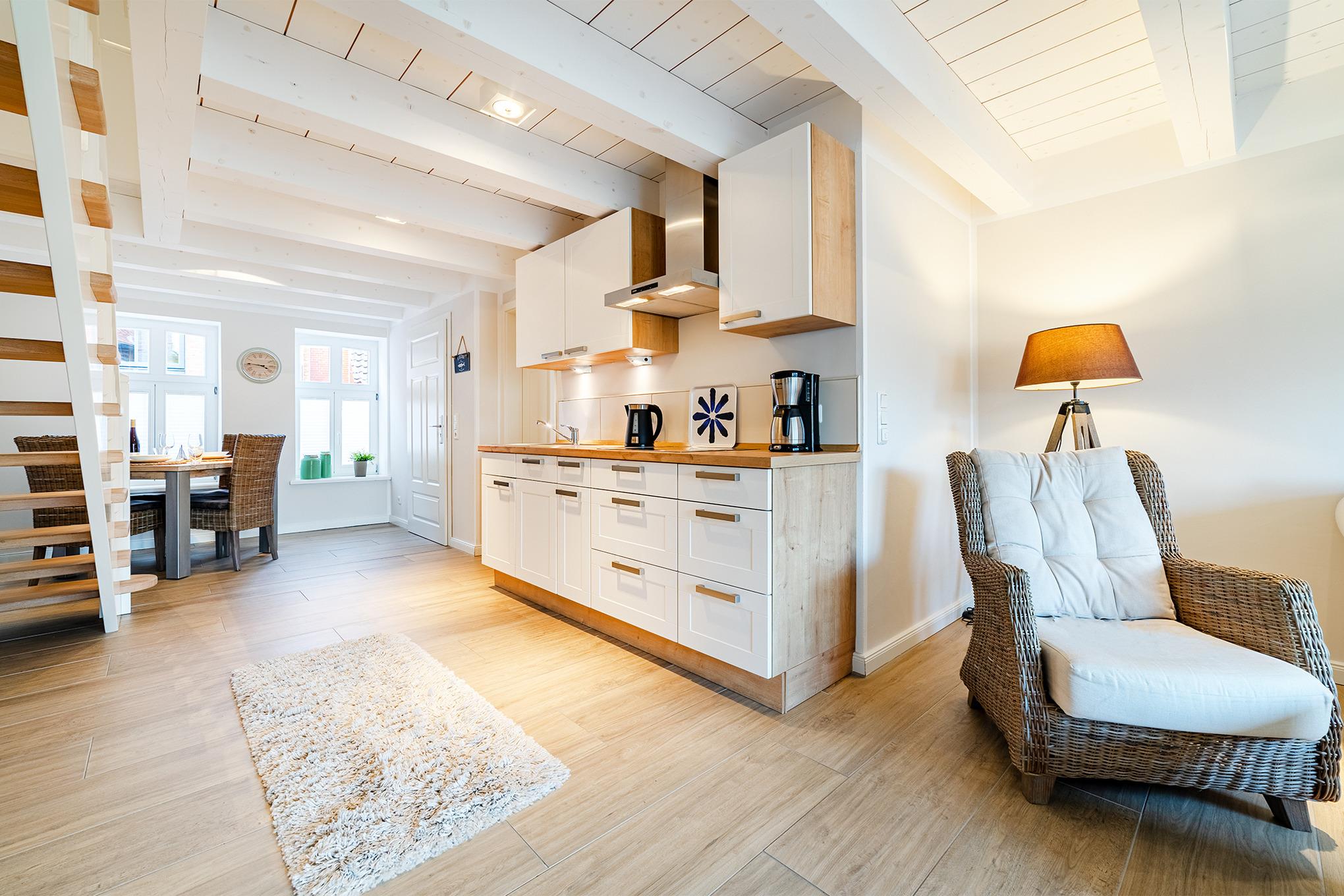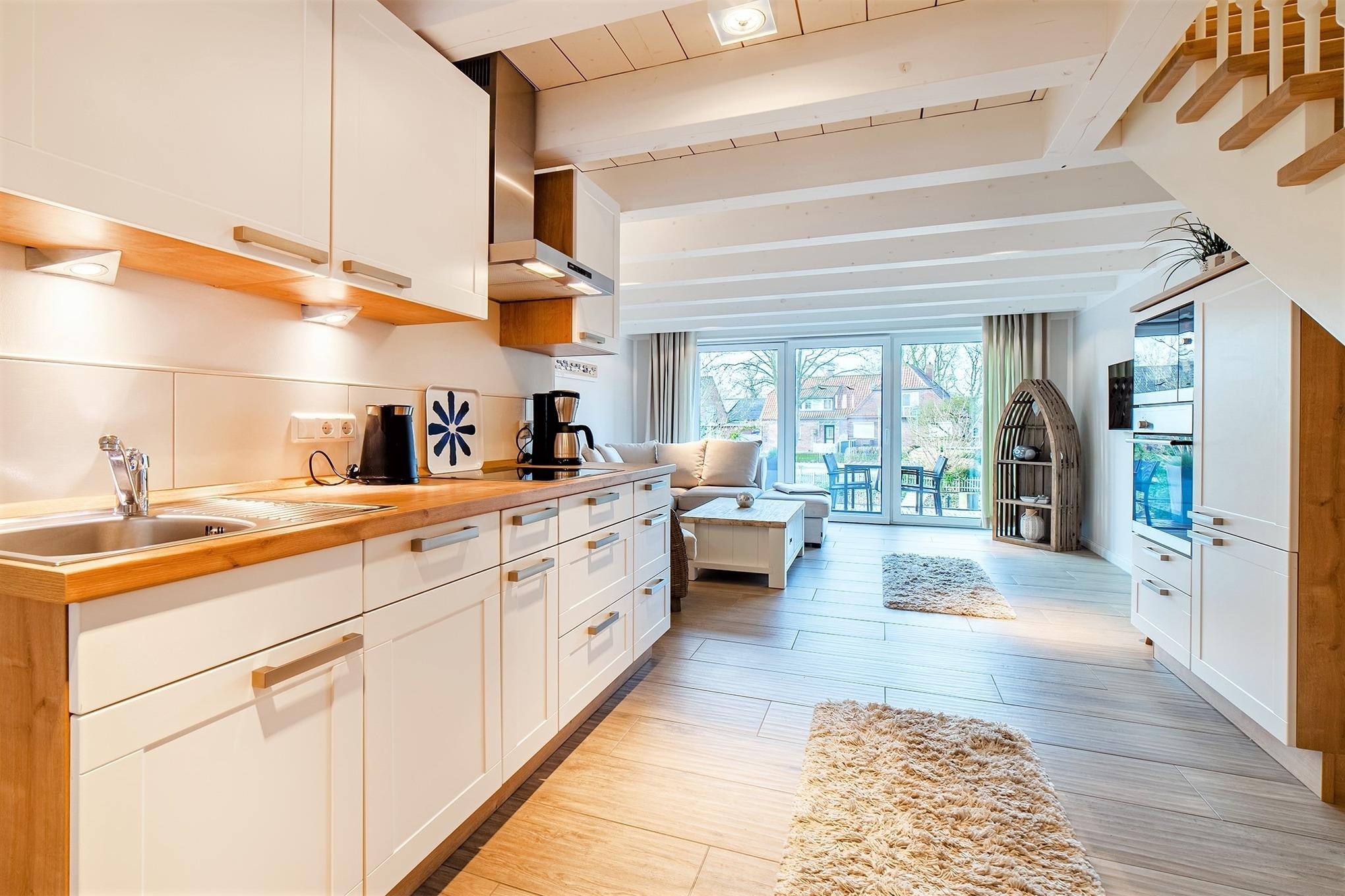 Das "Haus am Siel" besteht aus zwei Haushälften, hier ist die Rechte beschrieben. Sollten Sie mit mehr als 4 Personen reisen, kann die zweite Haushälfte (Haus am Siel 01) zusätzlich gebucht werden, über die offen gestaltete Terrasse erreichen Sie beide Haushälften.