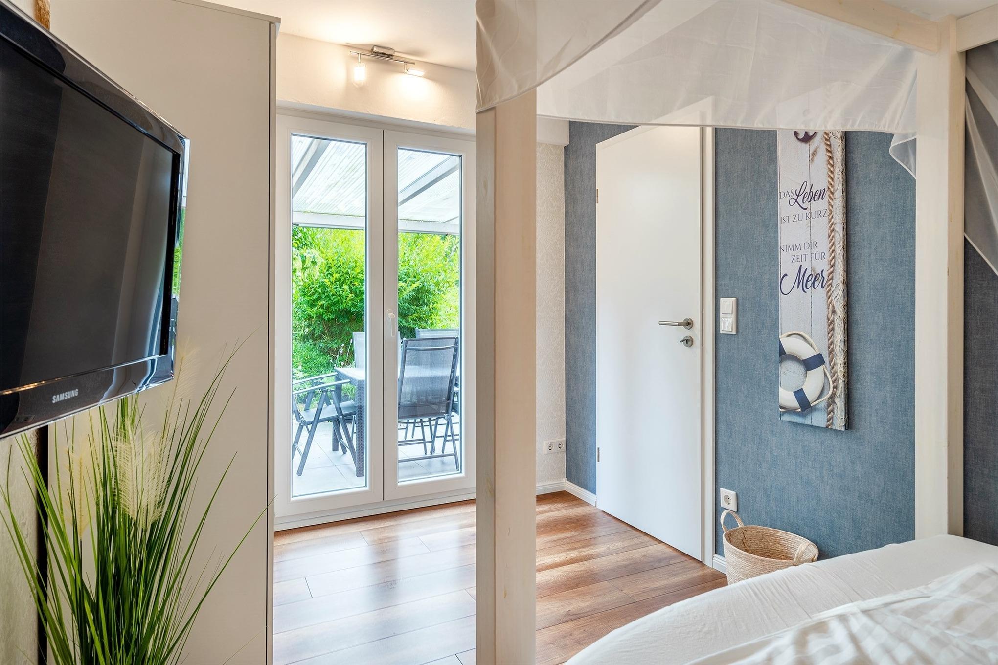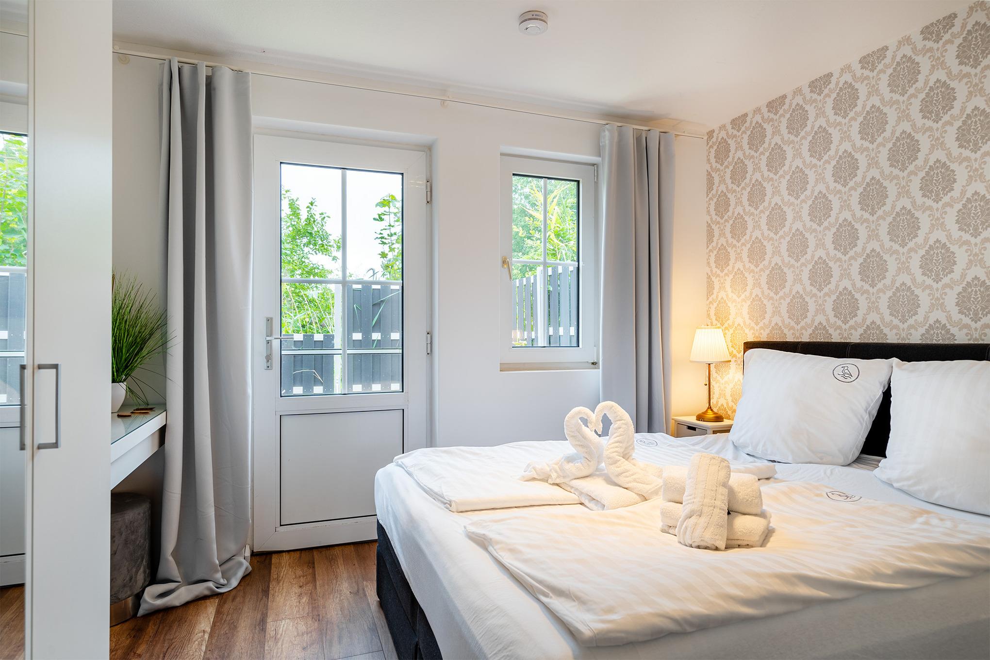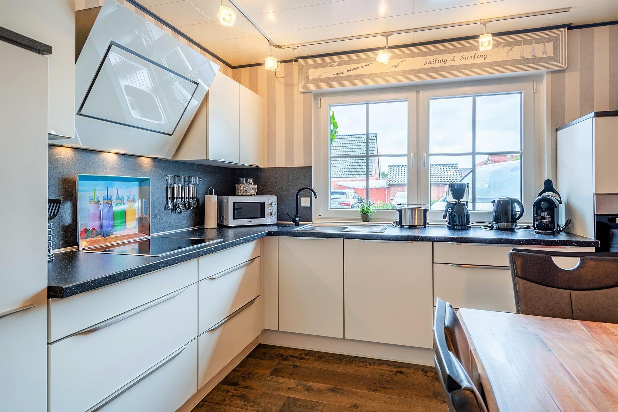 Das „Kamin Apartment“ bietet Ihnen auf rund 75qm eine stilvolle Kombination aus traditionellem Charme und modernem Komfort. Die im Erdgeschoss gelegene Ferienwohnung wurde mit viel Liebe zum Detail renoviert – besondere Akzente wie der originale Friesen-Kachelofen sorgen für eine behagliche Atmosphäre und laden nach einem erlebnisreichen Tag zum Entspannen ein. Die Wohnung verfügt über einen hellen Wohnbereich mit großem Sofa, eine voll ausgestattete separate Küche mit großzügiger Sitzecke sowie zwei gemütliche Schlafzimmer, wovon eines ein normal großes Doppelbett und das zweite ein 1,40m breites Bett bietet. Ein besonderes Highlight: Von einem der Schlafzimmer genießen Sie einen direkten Blick auf die berühmte „grüne Mühle“ der Region. Zwei Terrassen erweitern den Wohnraum ins Freie – eine davon ist überdacht und mit einer komfortablen Sitzgruppe ausgestattet, die andere bietet Sonnenliegen und einen freien Blick auf die Mühle – perfekt für entspannte Stunden im Freien. Auch Hunde sind im „Kamin Apartment“ herzlich willkommen. Für Ihren Komfort stehen Ihnen ein eigener PKW-Stellplatz sowie eine überdachte Abstellmöglichkeit für Fahrräder zur Verfügung. Die Wohnung verfügt über zwei Fernseher, einer befindet sich im Wohnzimmer, der andere in dem Schlafzimmer mit dem 1,4m großen Bett.