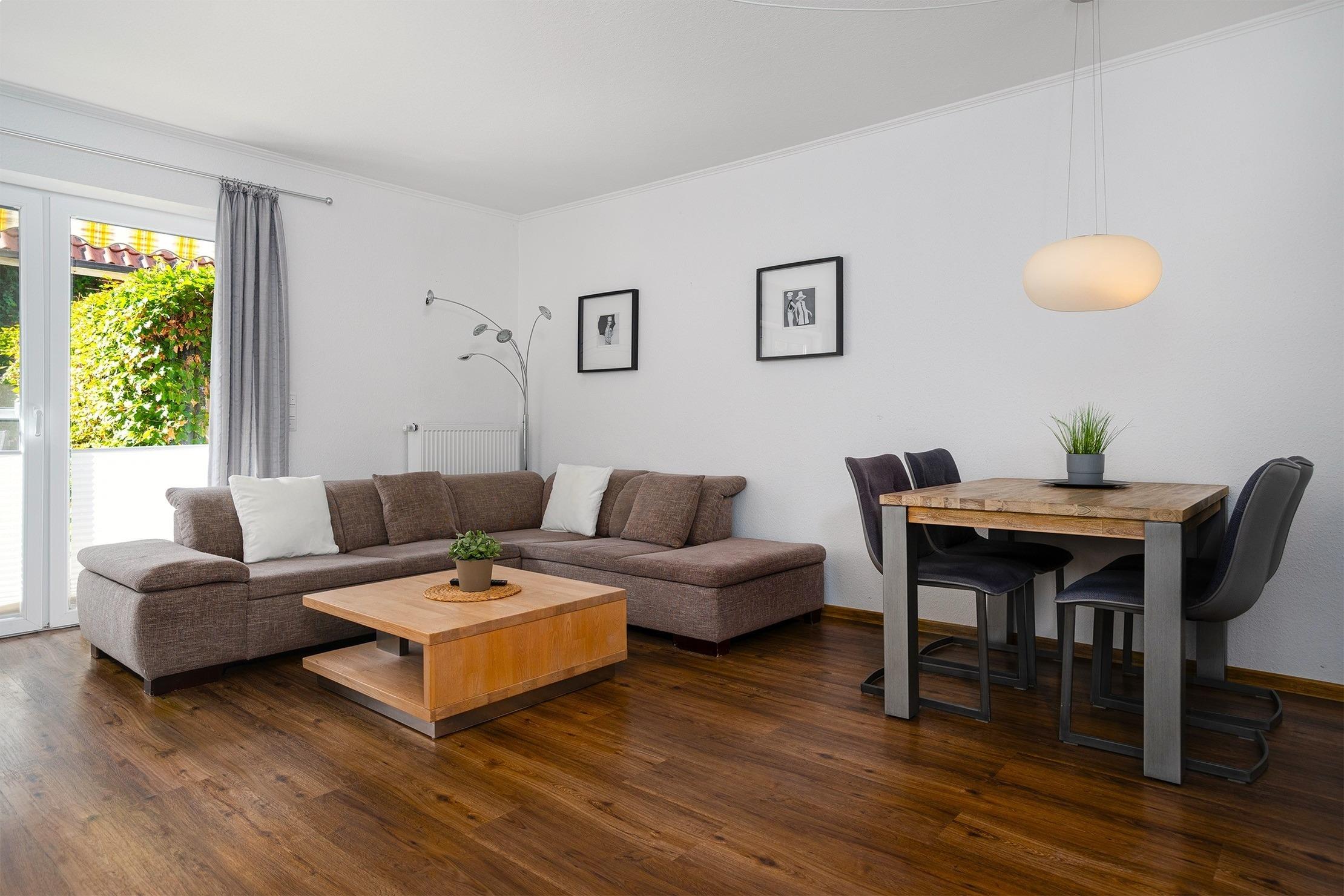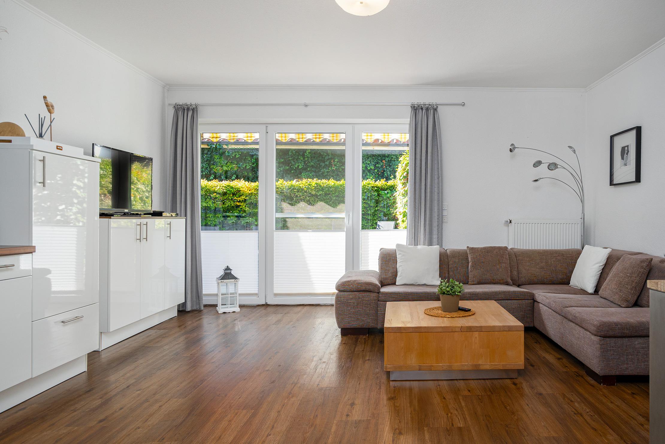 Die Ferienwohnung "Nordwind OST" bietet auf 80qm viel Raum für einen erholsamen Aufenthalt. Neben zwei geräumigen Schlafzimmern, die mit einem Doppelbett und einem Boxspringbett ausgestattet sind, bietet der lichtdurchflutete Wohnbereich ein großes Sofa zum Entspannen, eine offene und voll ausgestattete Einbauküche sowie direkten Zugang auf die sonnige Terrasse, die sich perfekt für gemütliche Stunden im Freien eignet. Das großzügige Tageslichtbad besticht durch seine ebenerdige Dusche und die Doppelwaschbecken. Besonders hervorzuheben ist die Kombination aus zentraler Lage und dem zusätzlichen Komfort eines eigenen Parkplatzes sowie einer privaten Terrasse, die zu entspannten Momenten im Freien einlädt. Auch hier Vierbeiner ist in dieser Wohnung herzlich Willkommen!