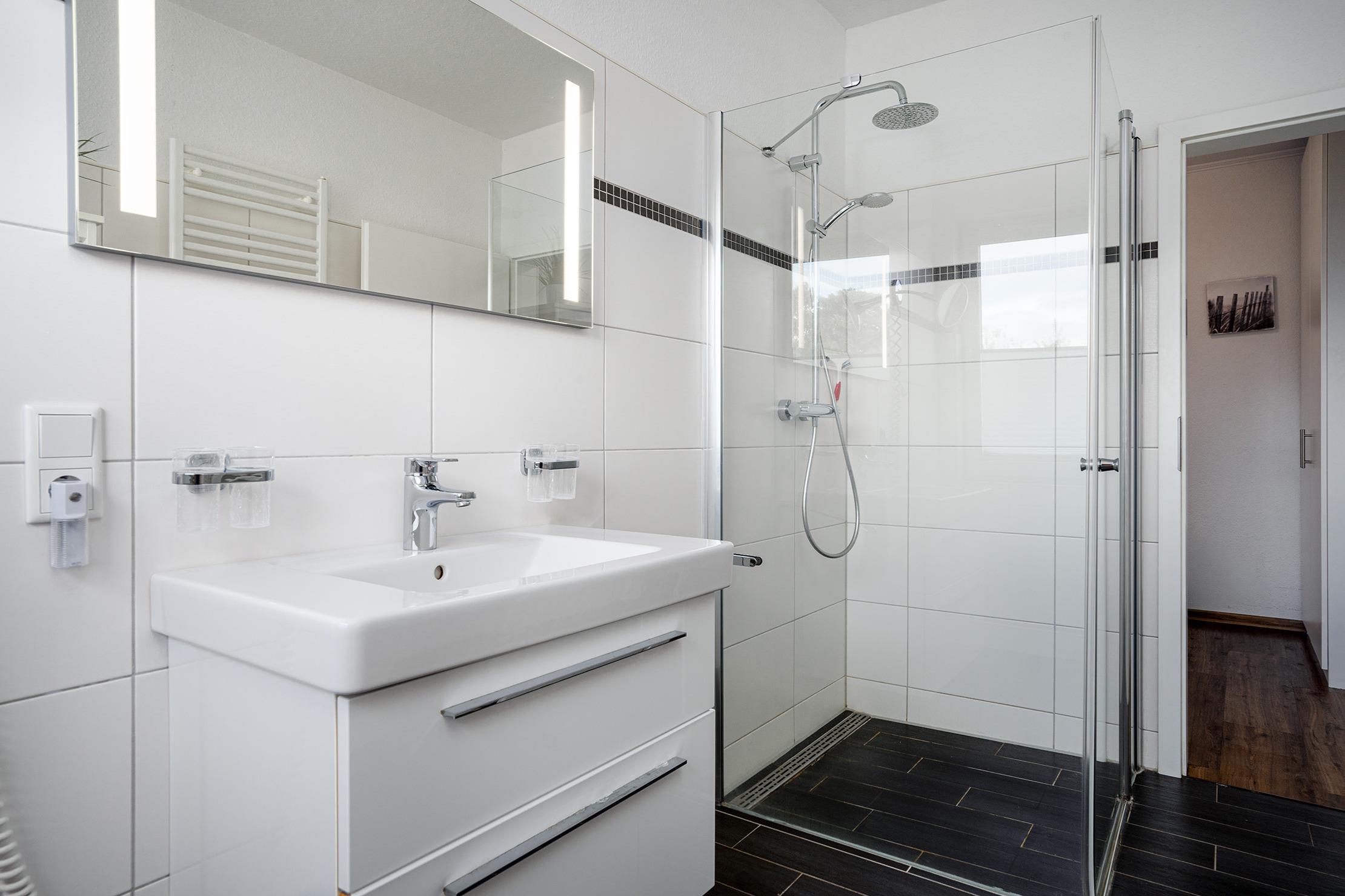 Unsere Wohnung "Nordwind SÜD" bietet die perfekte Kombination aus zentraler Lage und entspannter Privatsphäre. Auf etwa 80qm finden Sie zwei einladende Schlafzimmer mit einem Doppel- und einem Boxspringbett und ausreichend Ablagefläche und somit ist sie ideal für Familien oder Paare geeignet. Der großzügige Wohnbereich bietet neben einer voll ausgestatteten Einbauküche eine gemütliche Sitzecke. Das Tageslichtbad ist hell und mit einer ebenerdigen Dusche ausgestattet. Besonders hervorzuheben ist zum Einen der eigene Parkplatz an der Wohnung sowie die private Terrasse hinterm Haus, auf die Sie sich zurück ziehen und die frische Luft genießen können. Ihr Vierbeiner ist in dieser Wohnung ebenfalls herzlich willkommen!