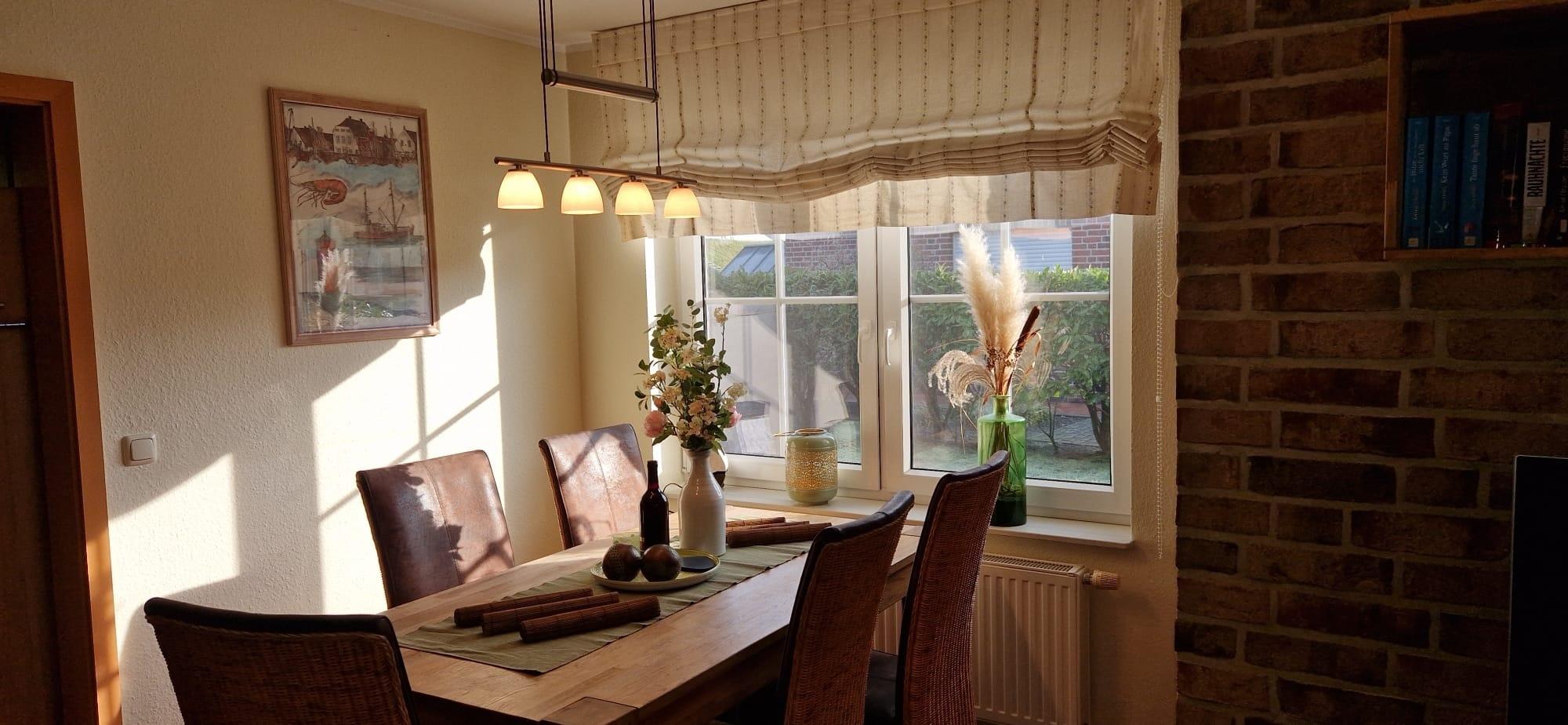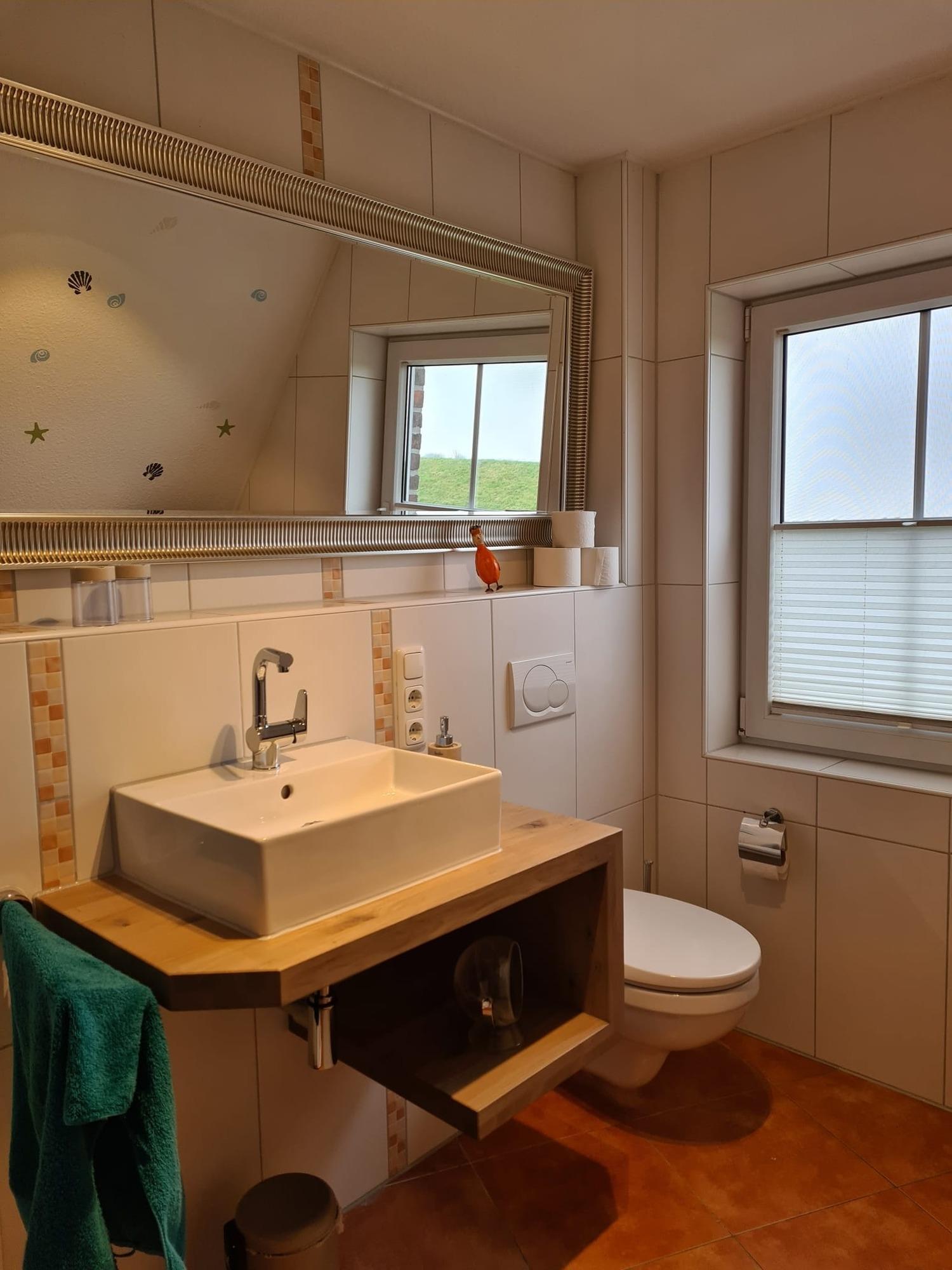 Willkommen im "Seehuus" Greetsiel – Ihrem Feriendomizil in traumhafter Lage, nur wenige Schritte vom Deich und dem Badesee entfernt. Auf ca. 90qm erwartet Sie eine gemütlich eingerichtete Doppelhaushälfte für einen entspannten Urlaub. Im Erdgeschoss genießen Sie ein einladendes Wohnzimmer sowie eine voll ausgestattete separate Küche. Die Essecke lädt zu geselligen Mahlzeiten ein. Ein Gäste-WC rundet das Angebot im Erdgeschoss ab. Im Obergeschoss befinden sich zwei Schlafzimmer mit großen Kleiderschränken sowie ein modernes Tageslichtbad. Ein Highlight ist außerdem das Dachgeschoss, in dem Sie einen Aufenthaltsraum mit einem Tischkicker finden, ideal für gesellige Abende oder Kinder. Im Außenbereich erwarten Sie zwei Gartenflächen - eine bietet einen eingezäunten Rasen mit Terrasse, der vor allem von Hundebesitzern sehr geschätzt wird. Im zweiten Bereich genießen Sie den Blick zum Deich und entspannen auf den Sonnenliegen. Ein Gartenhaus für Ihre Fahrräder ist vorhanden, ebenso wie der PKW-Parkplatz direkt vor dem Haus. Nutzen Sie die direkte Deichlage des Hauses für ausgedehnte Spaziergänge zum Hafen oder ins idyllische Ortszentrum.