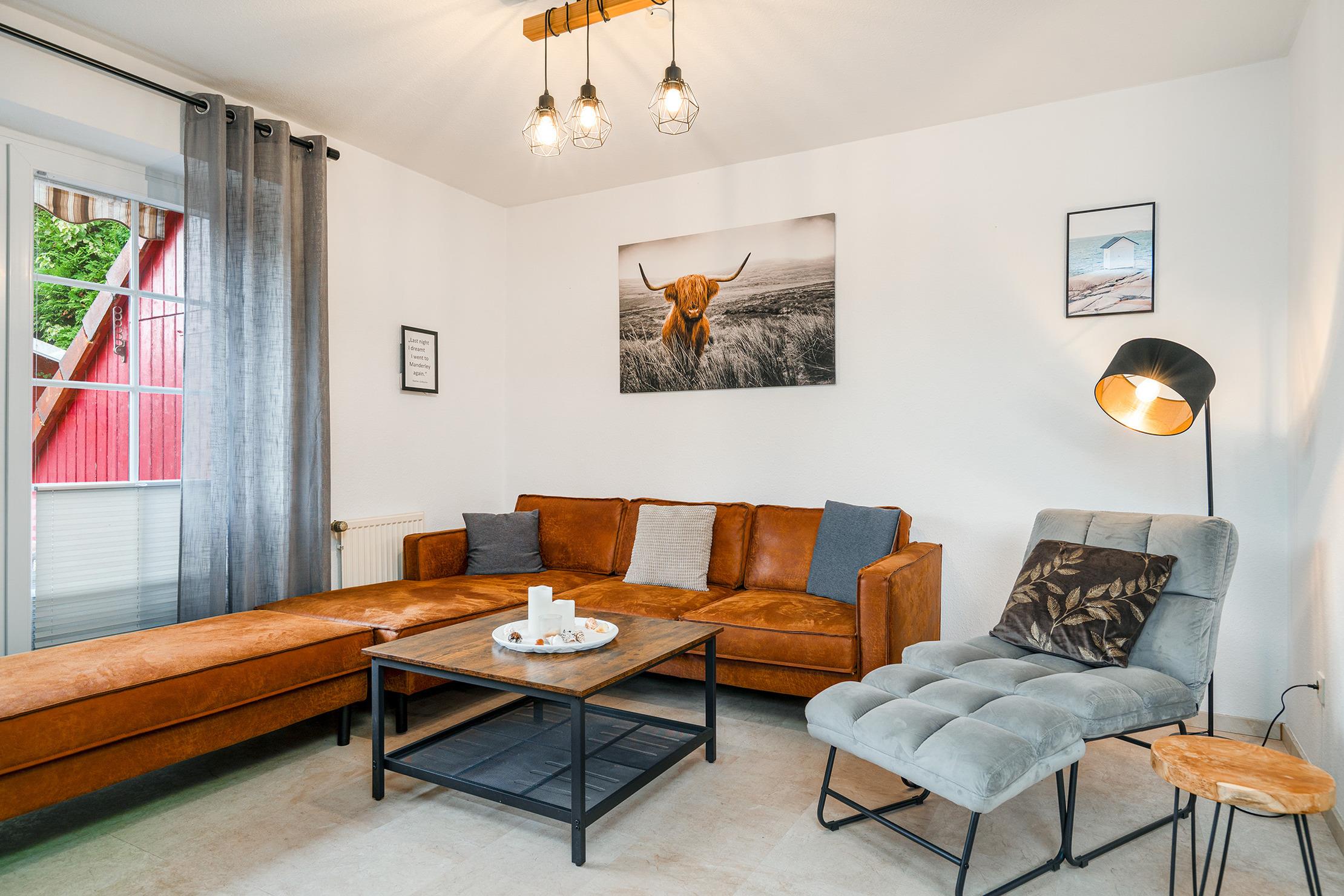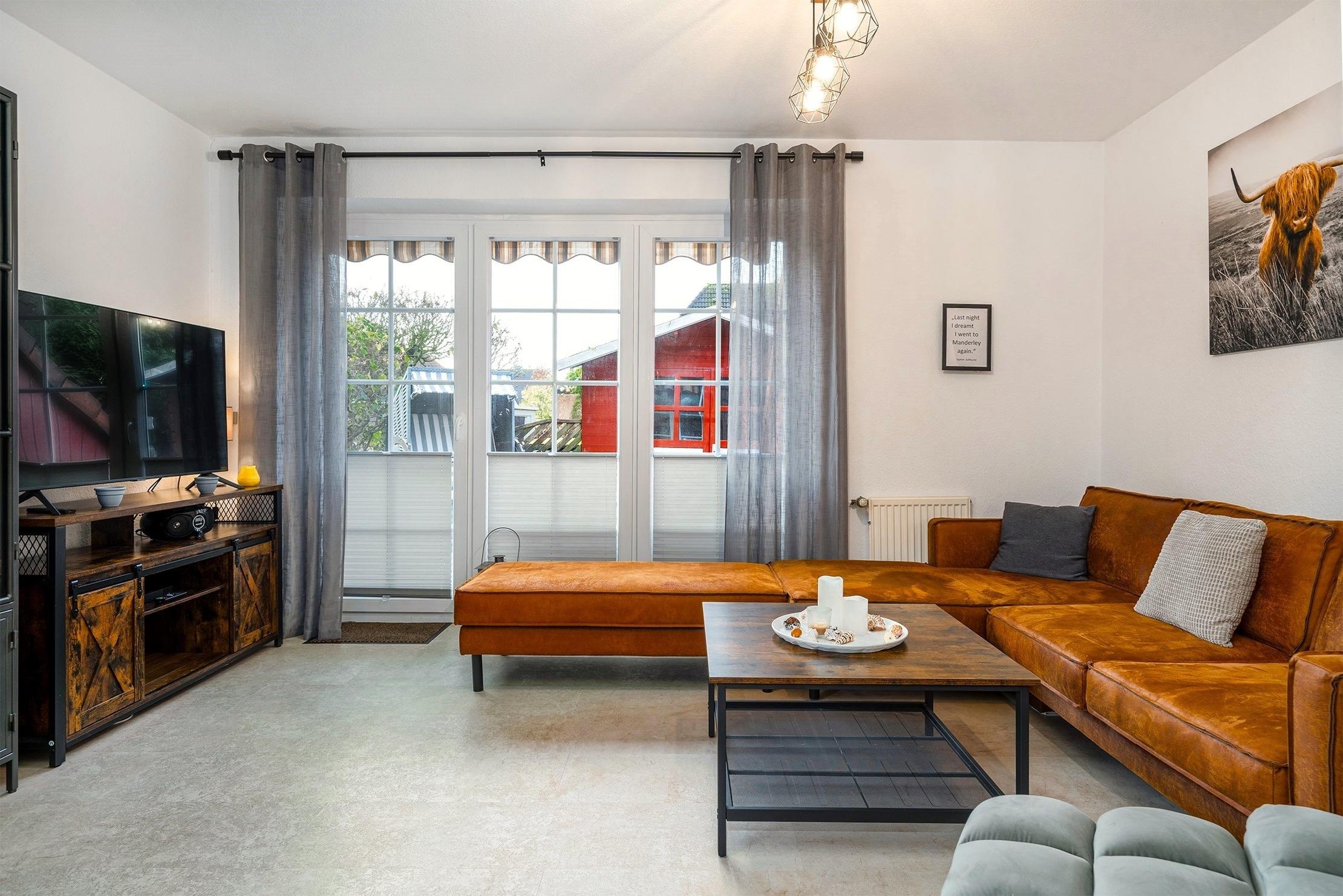 Unser charmantes Ferienhaus „Van Manderley“ befindet sich in einem traditionellem Ferienhausgebiet in Greetsiel und ist mit insgesamt drei Schlafzimmern der ideale Rückzugsort für einen entspannten Urlaub mit der Familie oder kleinen Gruppen. Im Erdgeschoss finden Sie einen geräumigen und gemütlichen Wohnbereich, der Zugang zur Terrasse bietet, sowie ein Gäste-WC und eine separate Küche mit voll ausgestatteter Küchenzeile. Auf insgesamt drei Etagen bietet das Haus drei Schlafzimmer, wovon sich zwei im Obergeschoss befinden. Eines verfügt über ein Doppelbett, sowie einen großen Einbauschrank. Das zweite Schlafzimmer bietet zwei Einzelbetten, wovon eines als Tandembett im Bedarfsfall auch als Doppelbett genutzt werden kann. Durch dieses Durchgangszimmer haben Sie Zugang zum Dachgeschoss, welches offen als Galerie gestaltet ein weiteres Doppelbett und eine Sitzgelegenheit bietet. Durch das komplett umzäunte Grundstück wird sich auch Ihr Hund hier sehr wohl fühlen. Die Terrasse bietet neben gemütlichen Lounge Möbeln auch einen Strandkorb sowie eine Markise für entspannte Stunden. Neben einem Abstellhaus für Fahrräder steht Ihnen selbstverständlich auch ein reservierter Parkplatz zur Verfügung.