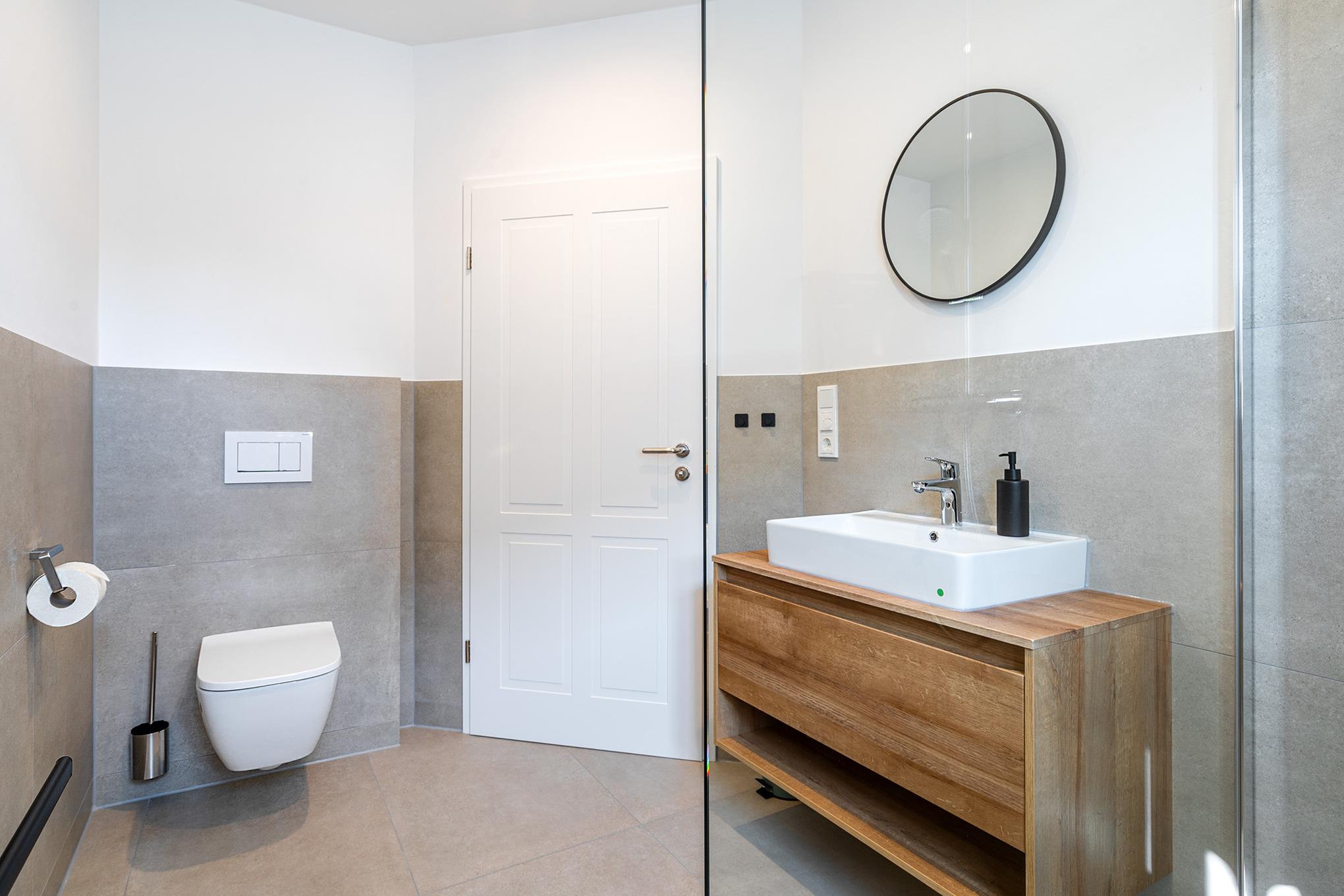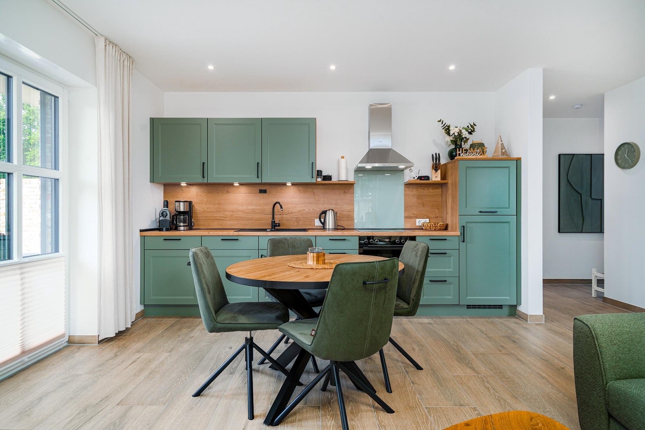 In unserer Erdgeschoss-Wohnung „Windhuus 2“ mit rund 55qm Wohnfläche erwartet Sie ein modernes Feriendomizil für entspannte Tage an der Nordsee. Die mittlere von drei Erdgeschosswohnungen bietet einen gemütlichen Wohn- und Essbereich mit voll ausgestatteter Küchenzeile und gemütlicher Sitzecke. Das komfortable Schlafzimmer mit Doppelbett sorgt für erholsame Nächte. Die Wohnung verfügt über ein ganz besonderes Highlight: eine eigene Infrarotkabine, die zu wohltuenden Wellness-Momenten einlädt. Das moderne Badezimmer ist mit einer ebenerdigen Dusche ausgestattet. Vom Wohnbereich aus gelangen Sie direkt auf Ihre private Terrasse mit angrenzendem Garten – ideal, um die frische Nordseeluft zu genießen. Die Lage ist zentral und dennoch ruhig: Der malerische Hafen von Greetsiel, charmante Geschäfte und einladende Restaurants sind bequem zu Fuß erreichbar.