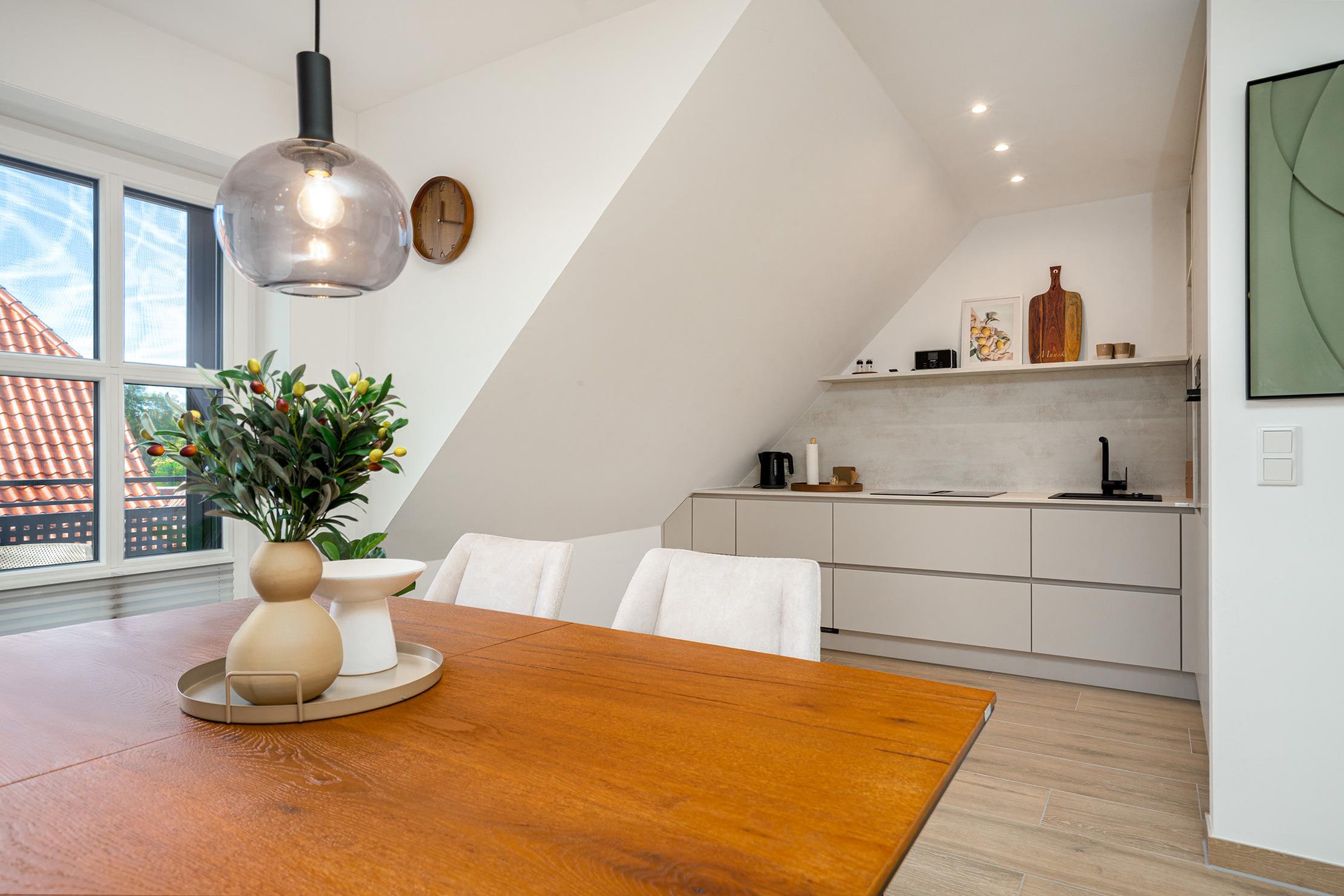 Unsere Ferienwohnung „Windhuus 5“ liegt im Obergeschoss eines Hauses mit sechs Wohneinheiten und verfügt über ca. 50qm Wohnfläche. Im offenen Wohn- und Essbereich mit integrierter Küchenzeile fühlen Sie sich sofort wohl. Von hier aus gelangen Sie direkt auf den Balkon, der zu entspannten Stunden an der frischen Nordseeluft einlädt. Das Schlafzimmer ist mit einem komfortablen Doppelbett ausgestattet und verspricht erholsame Nächte. Ergänzt wird die Wohnung durch ein modernes Tageslichtbad mit ebenerdiger Dusche. Durch die zentrale Lage erreichen Sie den historischen Hafen von Greetsiel, gemütliche Restaurants und kleine Läden bequem zu Fuß. Ob Spaziergänge, Radtouren oder einfach das Genießen der ostfriesischen Landschaft – hier wird Ihr Aufenthalt zum Erlebnis.