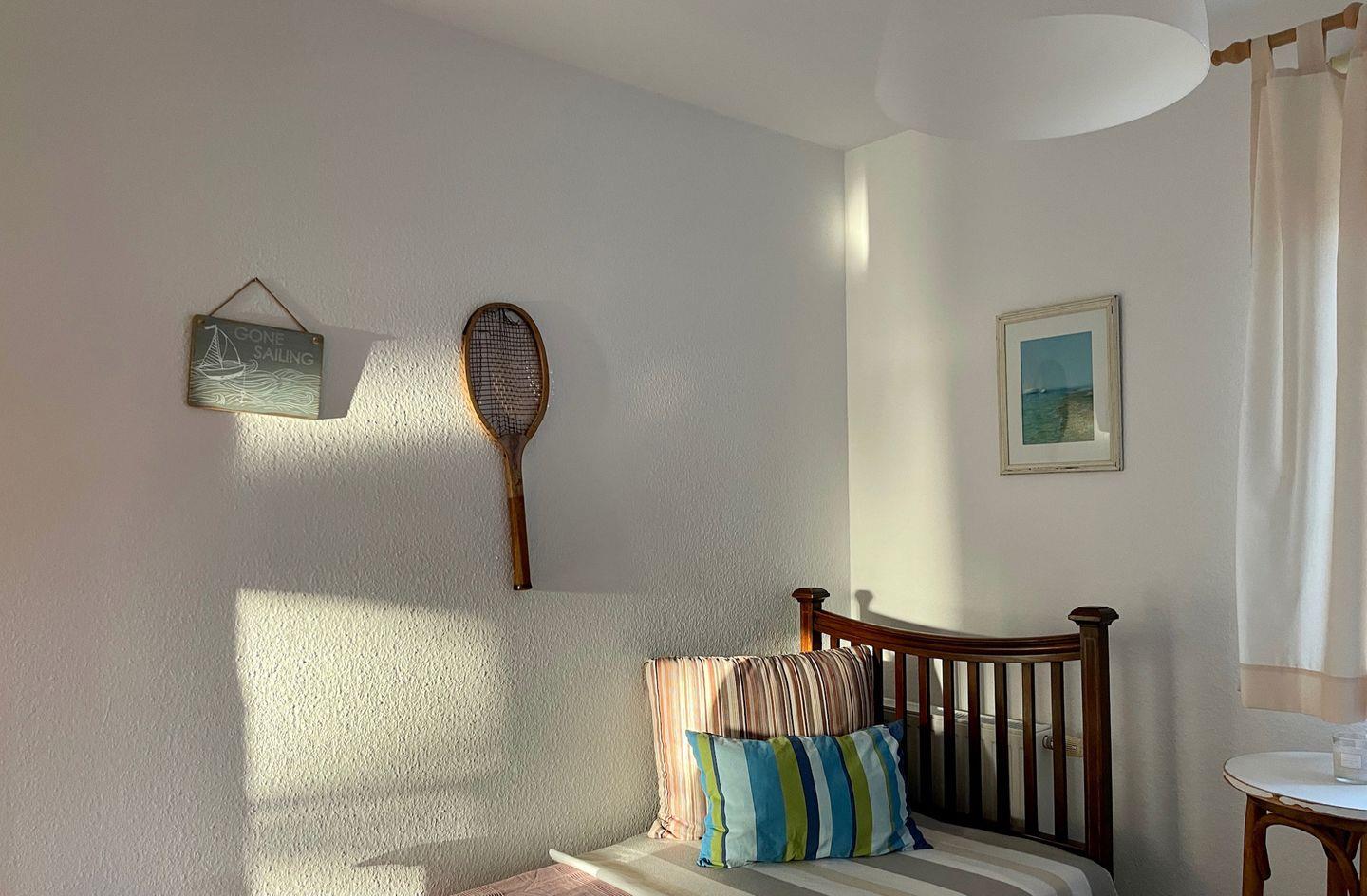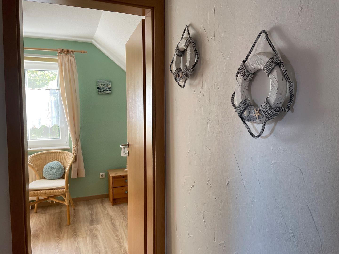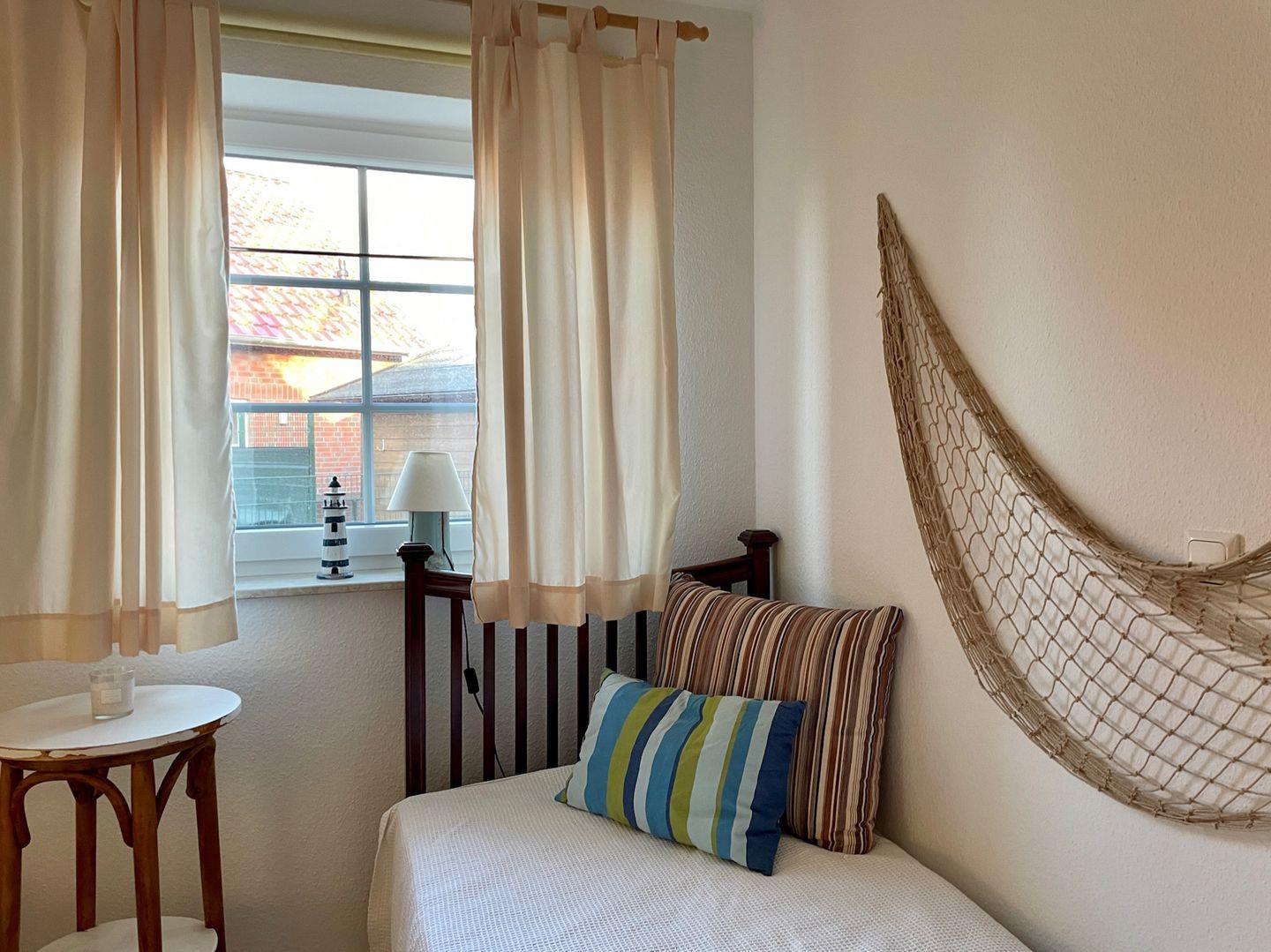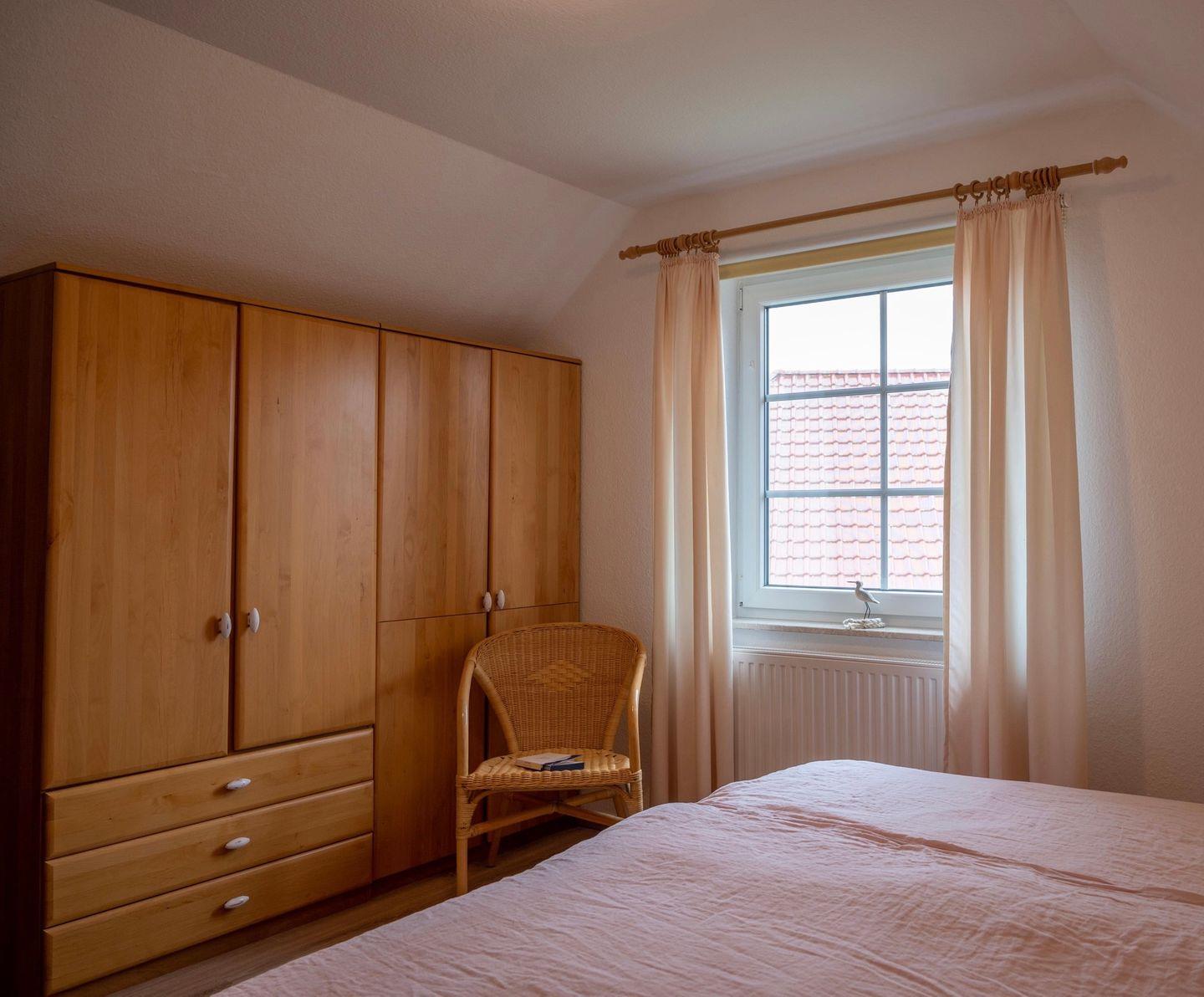 Das Haus verfügt über 3 Schlafräume (1xEG, 2xOG). Die Schlafräume im OG sind mit Laminat ausgelegt. Ein Schlafzimmer im Obergeschoss hat ein Doppelbett (1,80m x 2,00m). Im zweiten Schlafzimmer im OG befinden sich zwei Einzelbetten (1m x 2,00m). Im EG ist das Schlafzimmer mit zwei Einzelbetten ausgestattet.