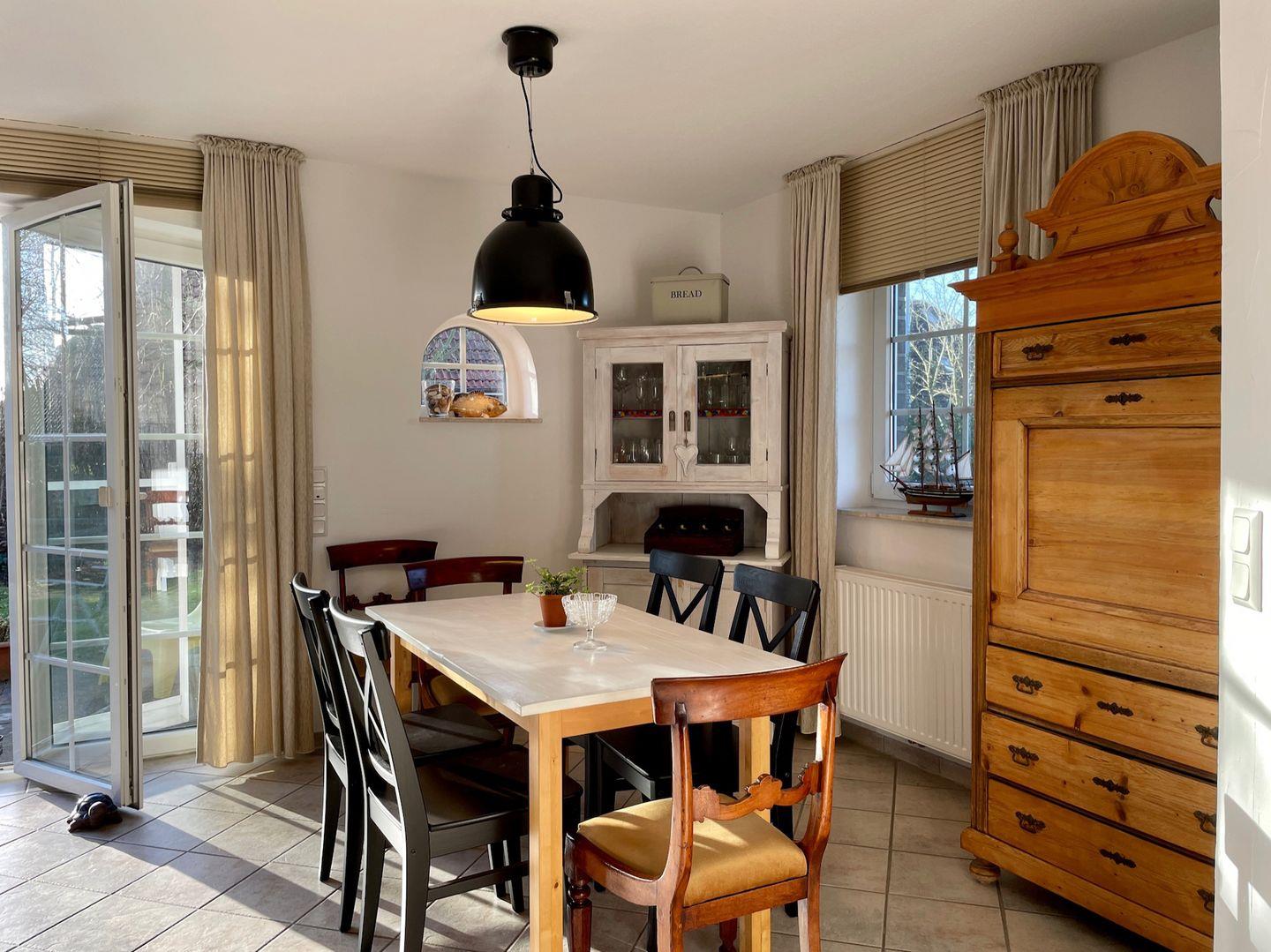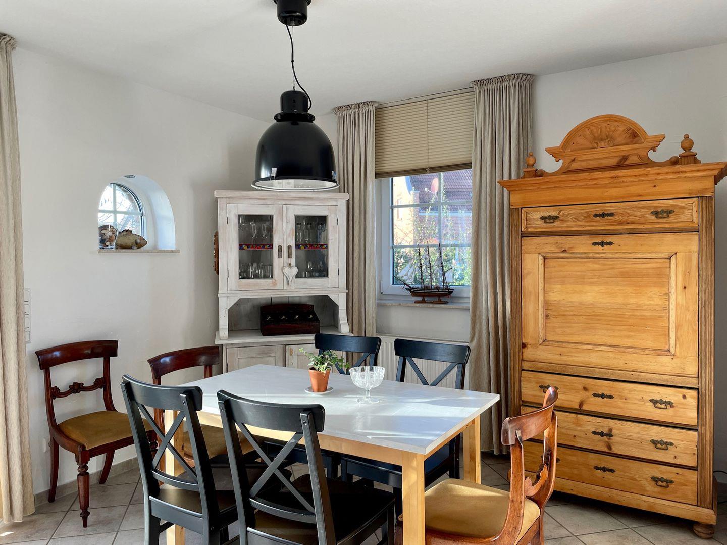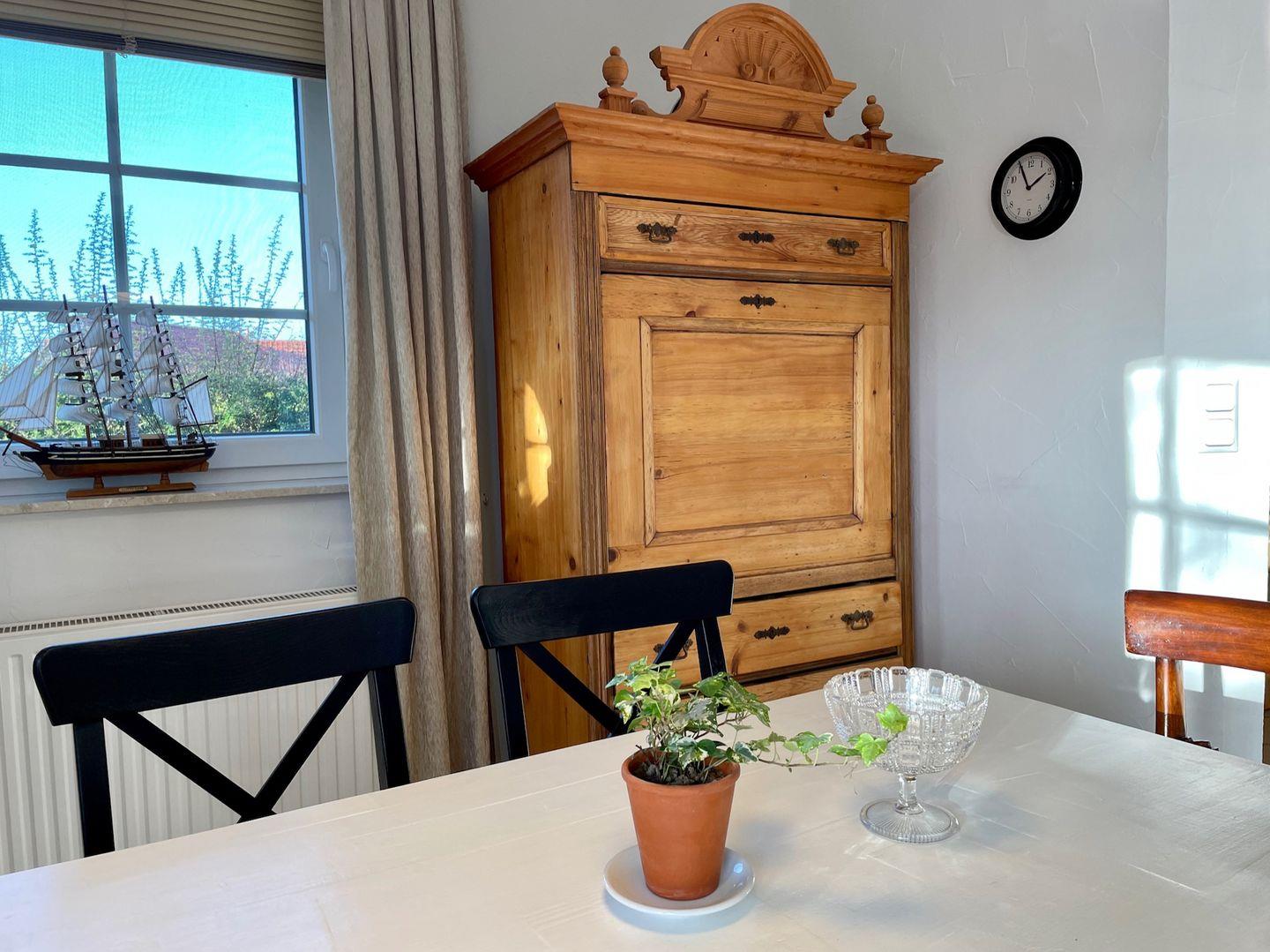 Im Haus verteilt befinden sich gründlich renovierte, verschiedene antike Möbel, wie z.B. ein Biedermeier Sekretär aus dem Jahre 1841. Damit hat das Haus einen individuellen Flair und bietet viel zum Entdecken. Wir haben bewusst warme Farben verwendet um eine ruhige Atmosphäre zu schaffen. Da uns Nachhaltigkeit wichtig ist, haben wir Wert darauf gelegt energieeffiziente Geräte für das Haus anzuschaffen. Wir legen auch Wert auf Naturmaterialien, die ein gutes Klima im Haus schaffen. Deswegen sind im Haus hauptsächlich Möbel aus Naturholz. Es gibt im Haus auch viele originelle Kunstwerke zu entdecken.