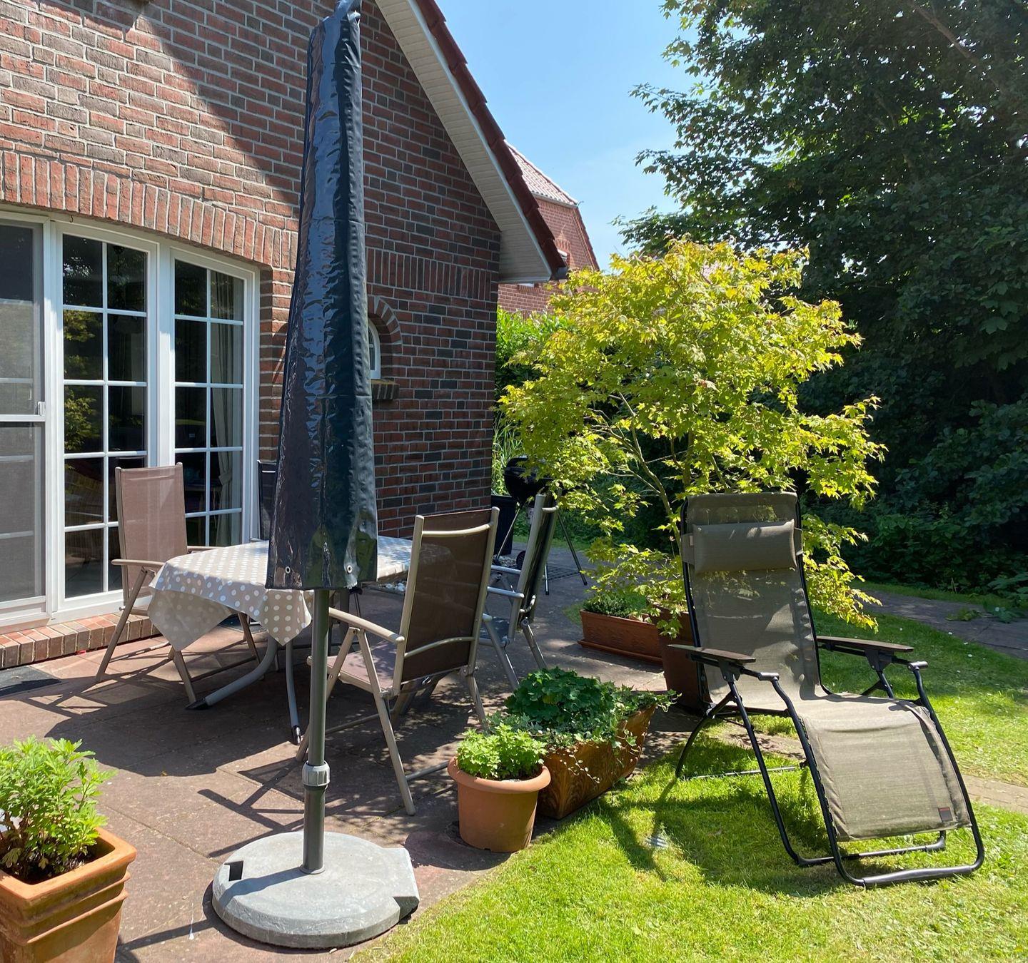 Unser stilvoll und individuell eingerichtetes Haus „Am Deich“ liegt in bester Lage DIREKT AM DEICH VON GREETSIEL, 5 Gehminuten vom Greetsieler Badesee, gleichzeitig aber nur wenige Gehminuten vom Greetsieler Ortskern entfernt, umgeben von einem schönen, großen Garten, wo Sie richtig entspannen und die Ruhe genießen können. Der Garten ist schön eingewachsen und die Bäume, Büsche und die Hecke bieten Ihnen viel Privatsphäre. Die sonnige Terrasse ist mit Mobiliar, Sonnenschirm und natürlich für alle Grillfreunde einem Kugelgrill ausgestattet. Im neuen Gartenhaus befinden sich Federball, Strandball und andere Spielgeräte. Dort ist auch Platz für Ihre Fahrräder.