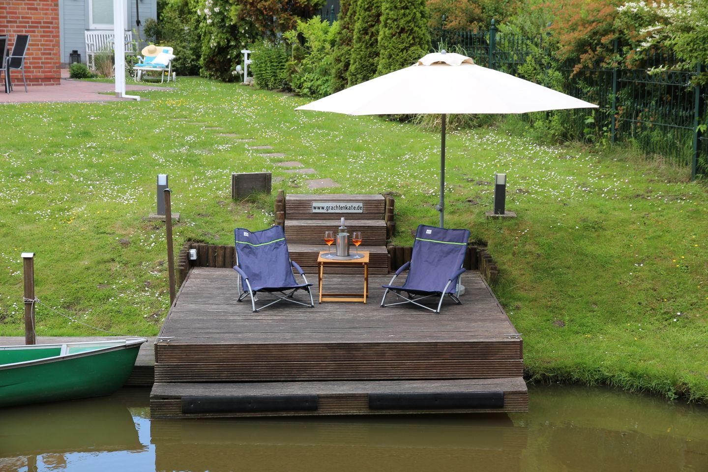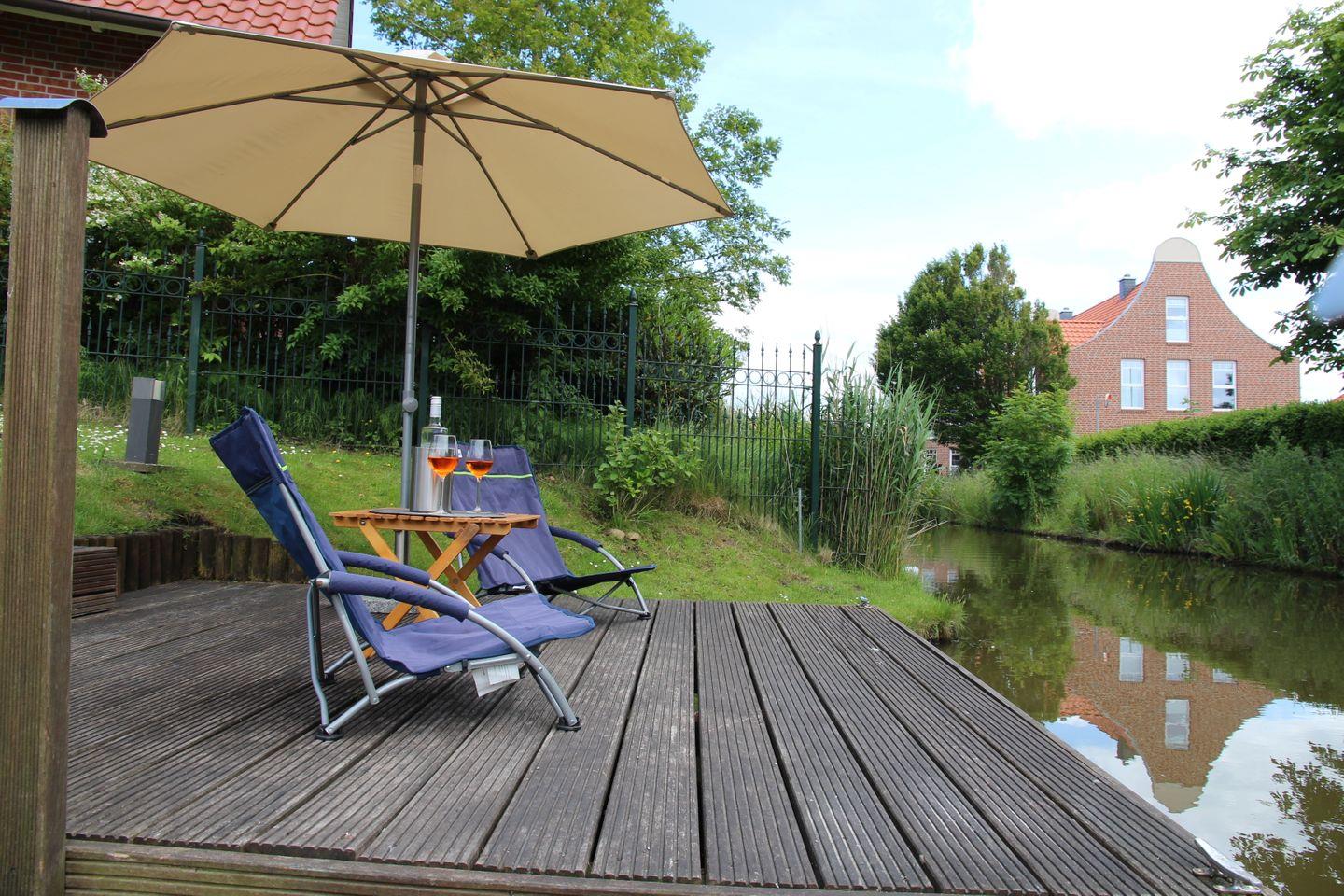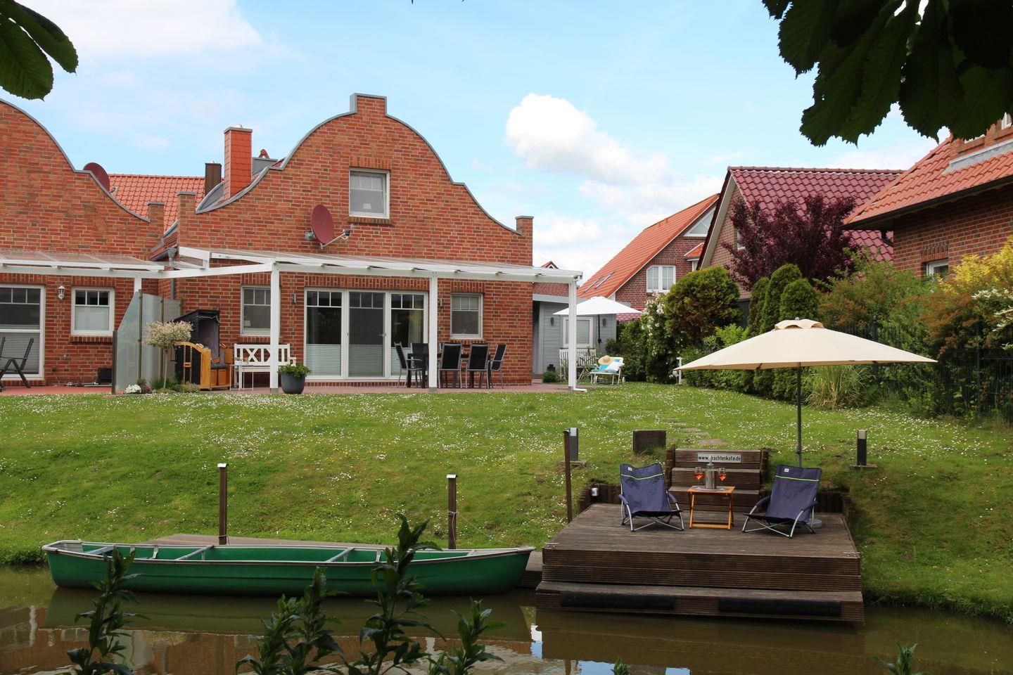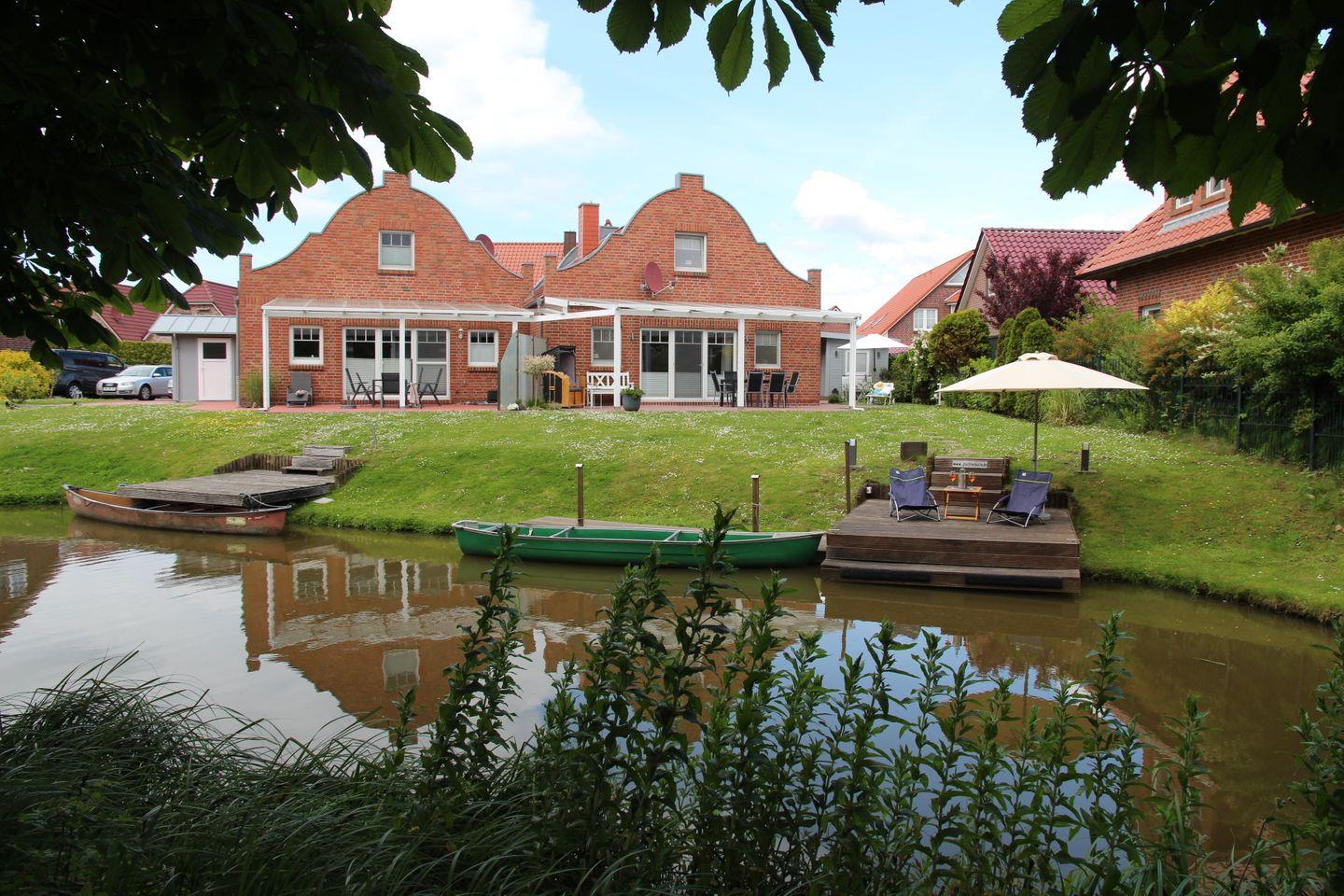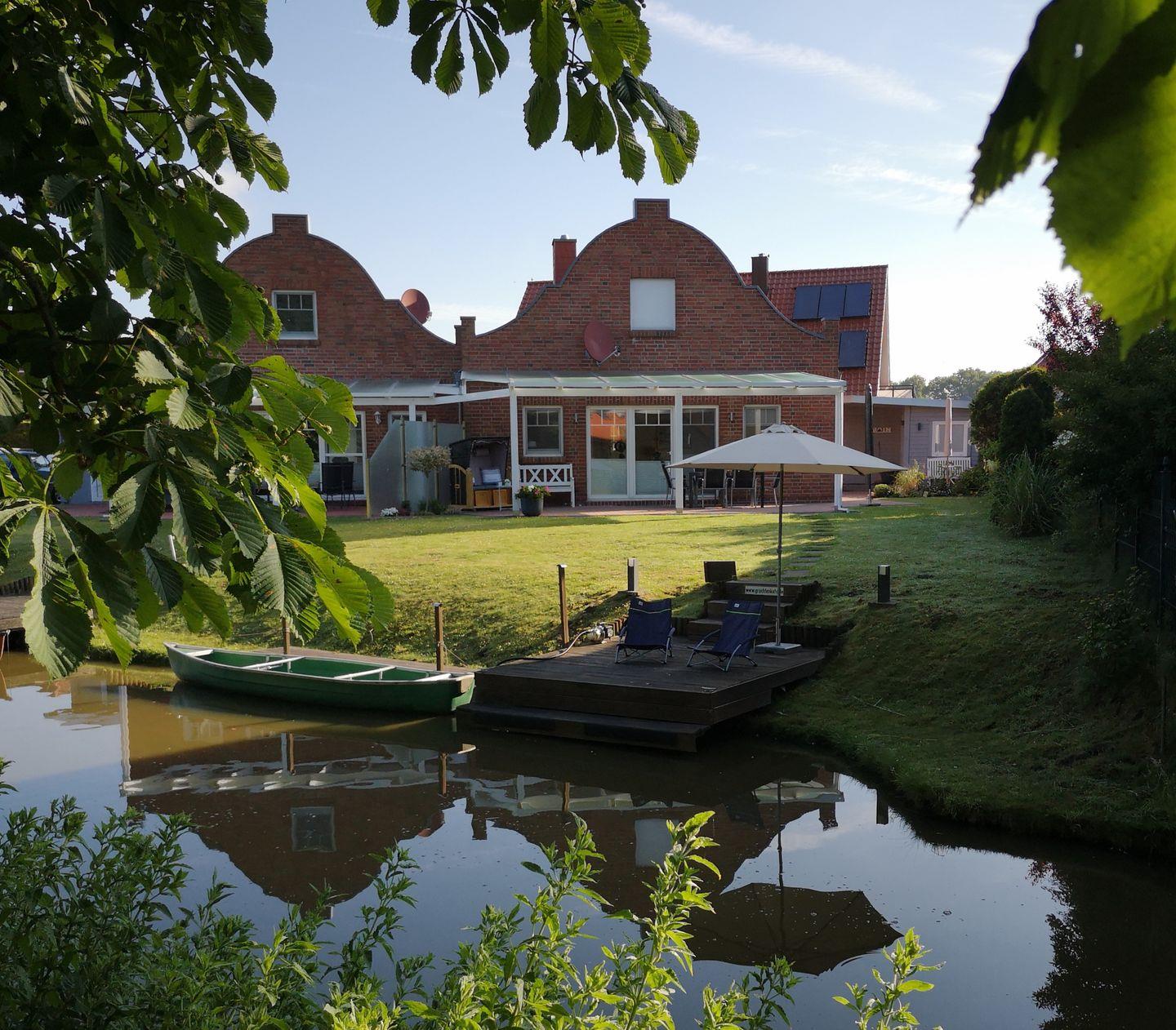 Diese (Doppel-)Kate mit dem schönen runden Giebel liegt mit dem Garten direkt an einer Gracht, sodass Sie mit dem vorhandenen Paddelboot (Verfügbarkeit des Bootes nur von April bis Oktober und ohne Gewähr, Nutzung auf eigene Gefahr) sofort vom eigenen Steg losfahren und Greetsiel und Ostfriesland "erkunden" können.