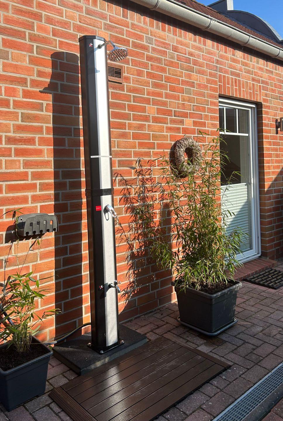 Außensauna mit kleinem Ruheraum, Benutzung gegen eine einmalige Gebühr von 25 € für den gesamten Aufenthaltszeitraum plus 5 Euro für die Endreinigung. Neu ist nun auch direkt angrenzend eine Außendusche vorhanden.