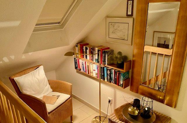 Der Kaminofen im EG, ein gemütlicher Lesebereich im OG oder die Außensauna laden zu gemütlichen Abenden und ruhige Stunden ein. Die weitgehende Fußbodenerwärmung im Erdgeschoss sorgt für Behaglichkeit.