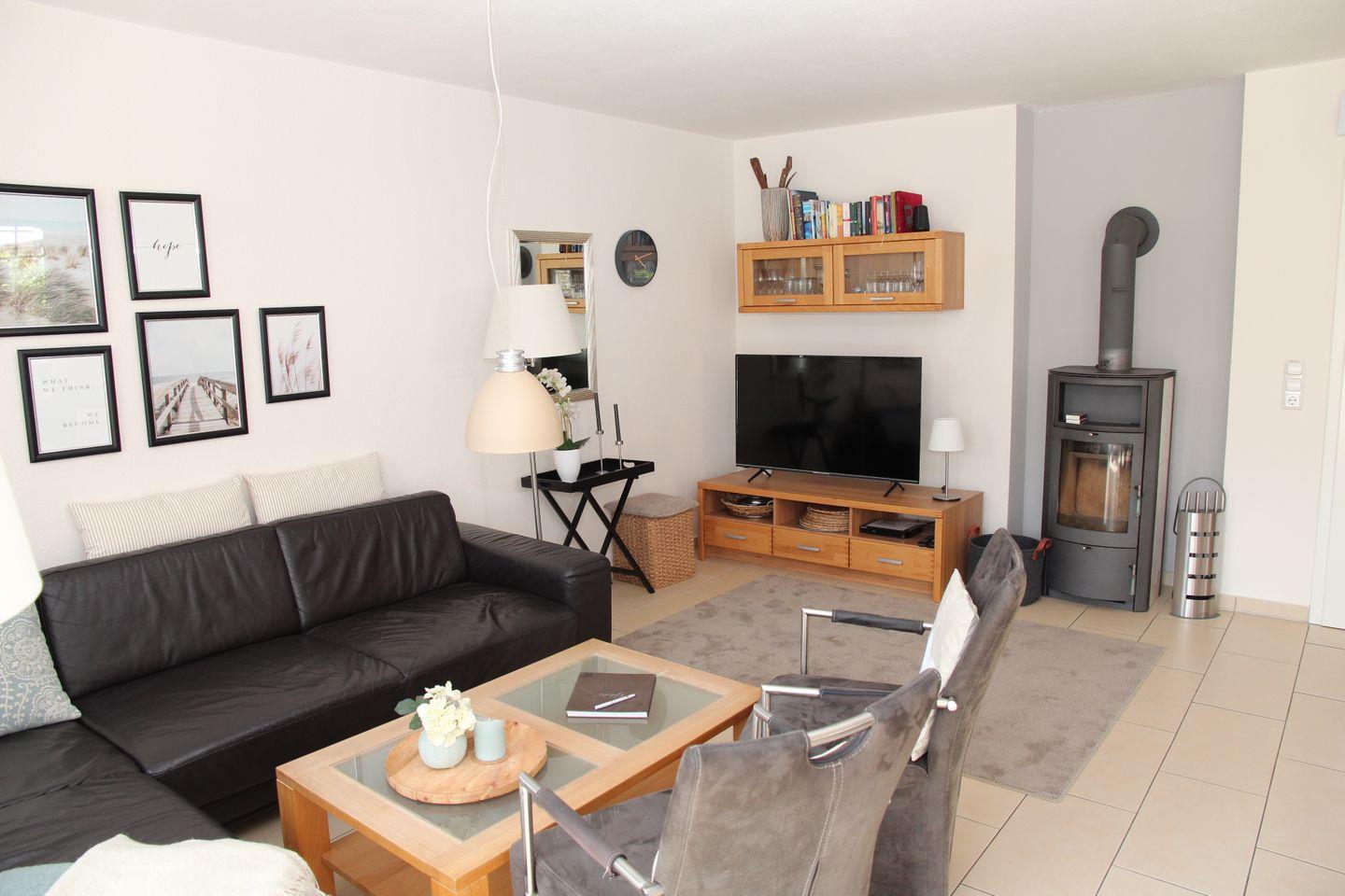Das Haus ist sehr geschmackvoll und vollständig eingerichtet. Im Erdgeschoss befindet sich der großzügige Wohn-/Essraum (50 Zoll Flachbildfernseher, DVD, Musikanlage mit CD-Laufwerk und MP3 und integrierter iPod Ladestation) mit großer Küchenzeile mit Induktionskochfeld, Backofen, große Kühl-Gefrierkombination, Geschirrspüler, Mikrowelle, Toaster, Eierkocher, Stabmixer, Senseo, Kaffeemaschine, Wasserkocher, Waffeleisen.