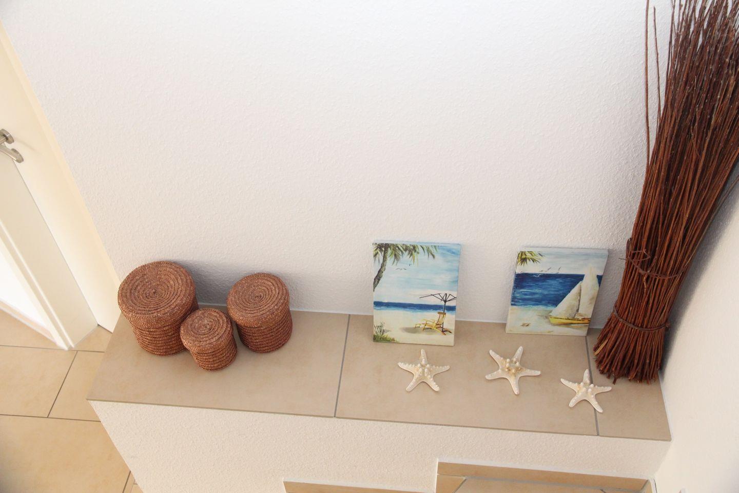 Eine Schattierung der Fenster ist durch Plisseerollos gewährleistet. Die FEWO hat einen schönen möblierten Balkon. Einen Abstellraum für mitgebrachte Fahrräder gibt es ebenso.