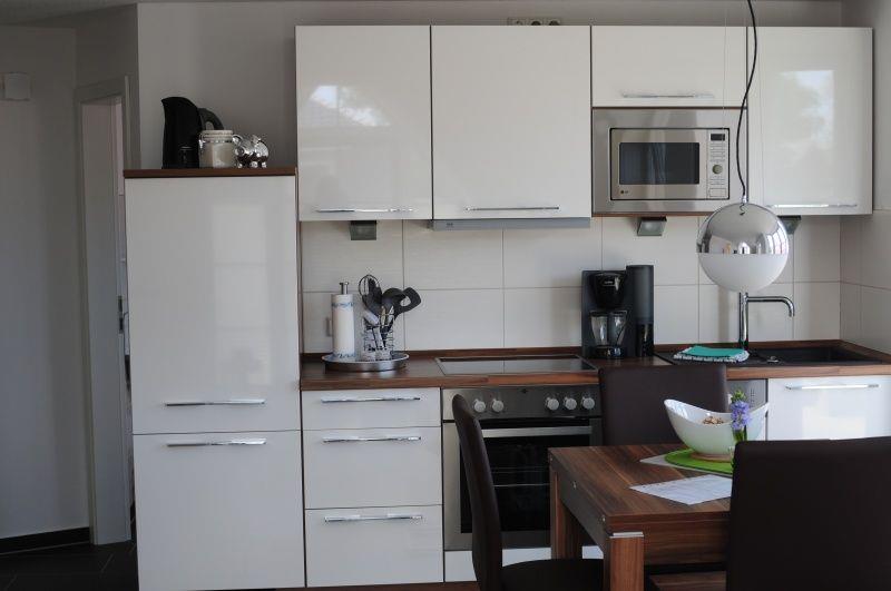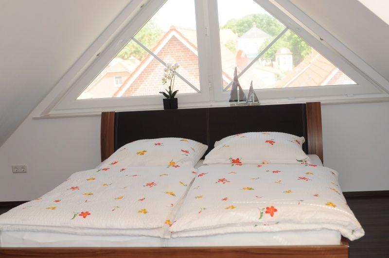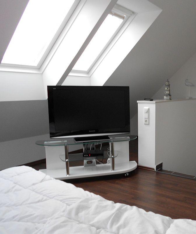 Die Wohnung verfügt über 2 Schlafzimmer, wovon sich eins im großzügigen Studio unterm Dach befindet (Doppelbett) mit einem weiteren LCD-TV. Darunter - im OG - befindet sich der Wohn-Essbereich mit der hochwertig ausgestatteten Küche, einem ausziehbaren Tisch und 4 Stühle, sowie eine Ledercoach und der TV Flachbildschirm.