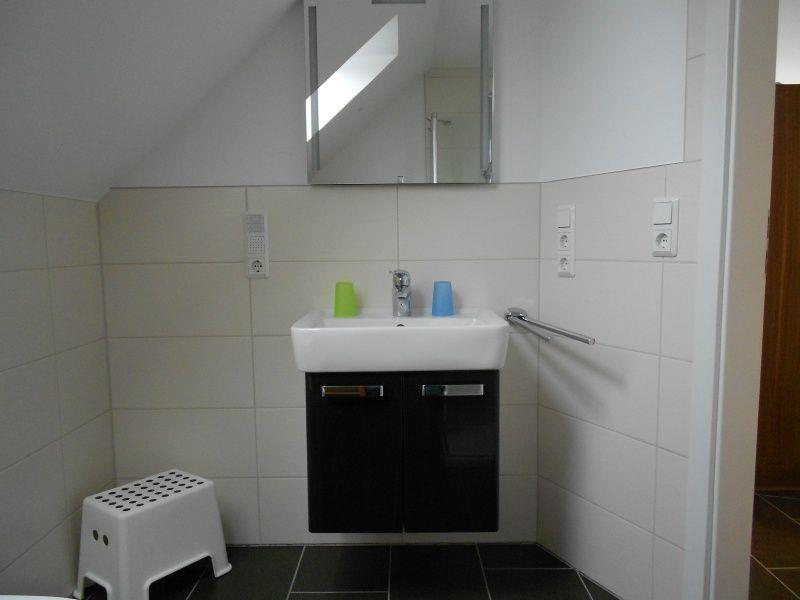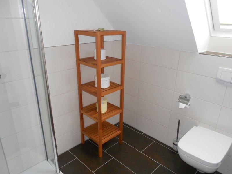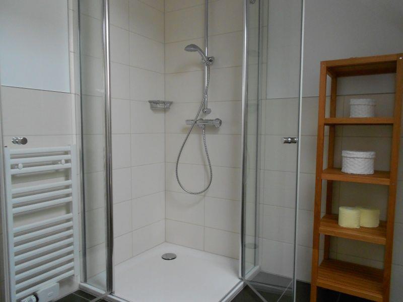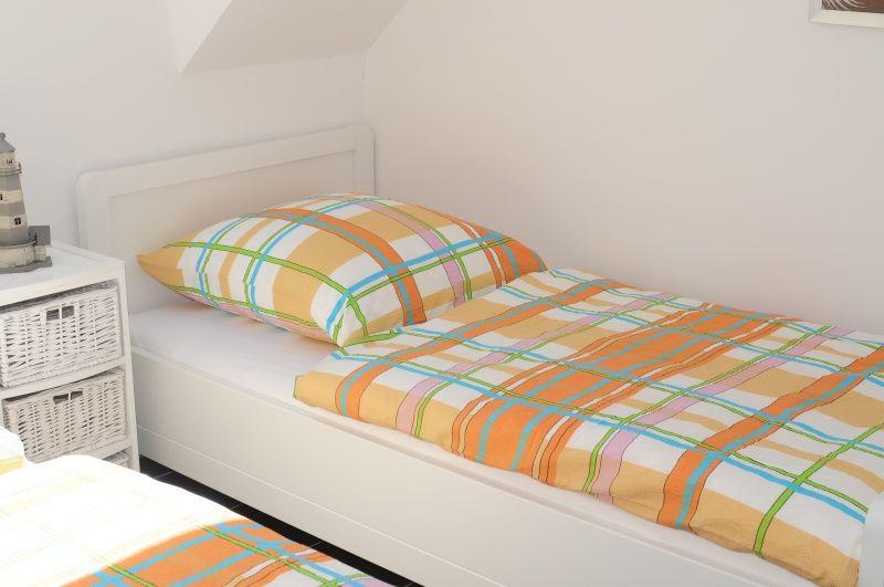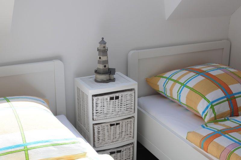 Das 2. Schlafzimmer verfügt über 2 Einzelbetten und einen großen Kleiderschrank. Das moderne Badezimmer mit Dusche befindet sich ebenfalls im 1. OG.