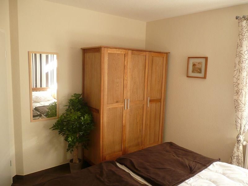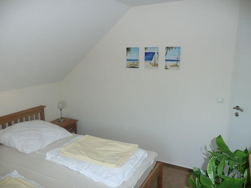 Das Haus verfügt über 3 Schlafzimmer (ein Schlafzimmer ist mit einem LCD-TV ausgestattet - Anschlüsse sind in allen Schlafräumen vorhanden), eines der Schlafräume befindet sich im Erdgeschoss (Doppelbett 2x2m mit verstellbaren Lattenrosten), die beiden anderen Schlafzimmer befinden sich im Obergeschoss. Alle Schlafzimmer verfügen über Außenjalousien. Ein Schlafzimmer dort ist mit einem Doppelbett ausgestattet (2x2m), das andere mit 2 Einzelbetten (2x0,90 m). Das Kinderbett kann in den oberen Schlafräumen aufgestellt werden. Ein Duschbad ist behindertengerecht mit Duschhocker und Wandhalterung ausgestattet.