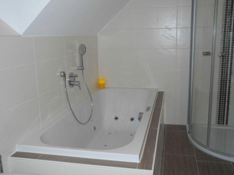 Ein Highlight im Grachterum ist das gemütliche und hochwertige Badezimmer mit einer eingebauten Badewanne, Runddusche, Waschtrockner (Kombination aus Waschmaschine und Trockner) und einem Haartrockner.