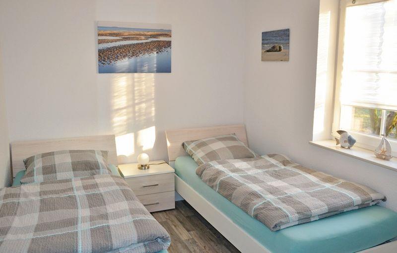 Ein Schlafzimmer ist mit einem Doppelbett (1,80 x 2 m), einem Schwebetürenkleiderschrank und TV (32 Zoll) eingerichtet. Das zweite Schlafzimmer verfügt über 2 Einzelbetten + Kleiderschrank. Die Schlafräume sind mit Außenrollos versehen, hochwertige Matratzen und Decken, sowie verstellbare Lattenroste + zusätzliche Fleecedecken sorgen für Ihr Wohlbefinden.