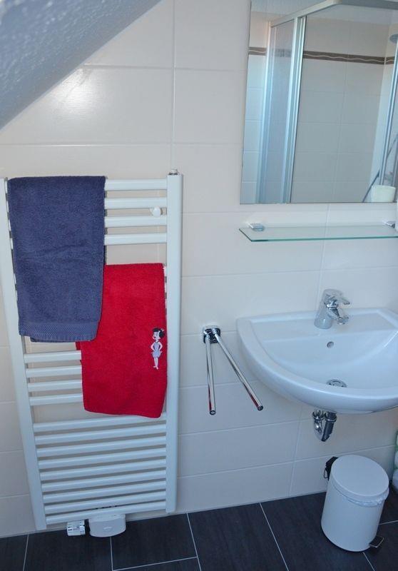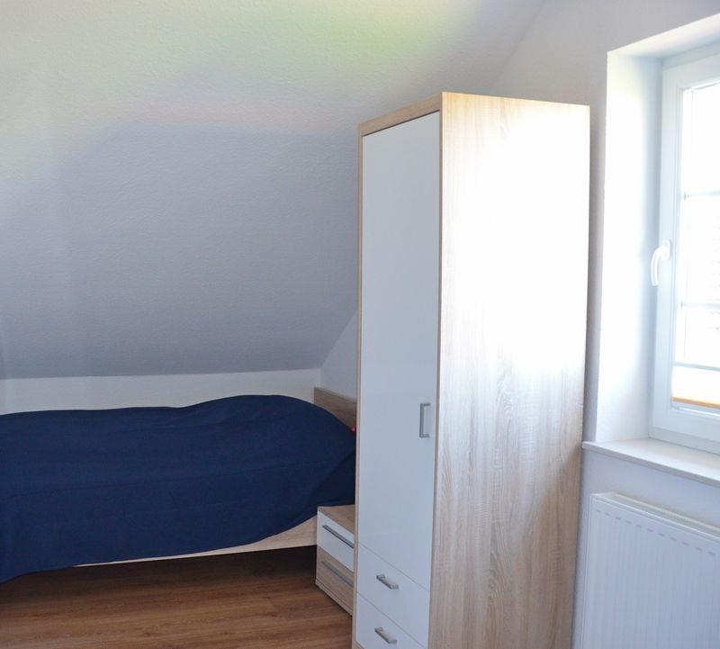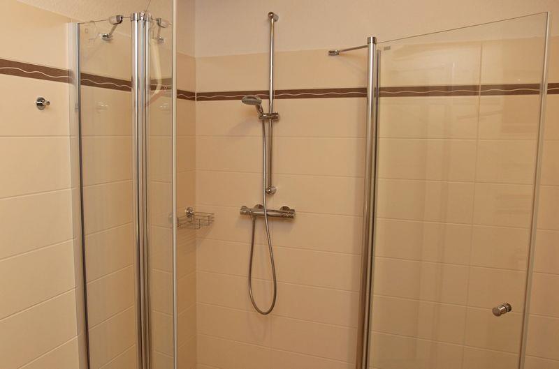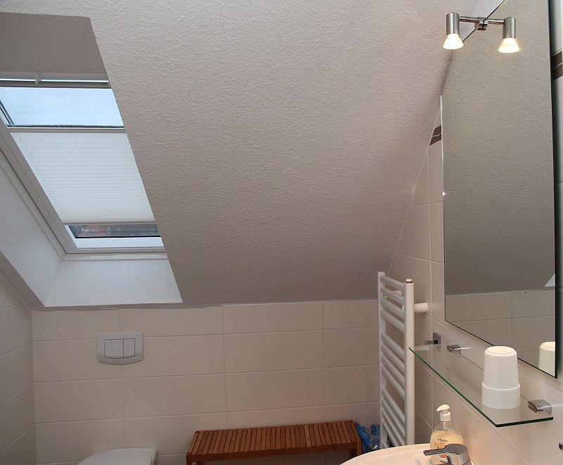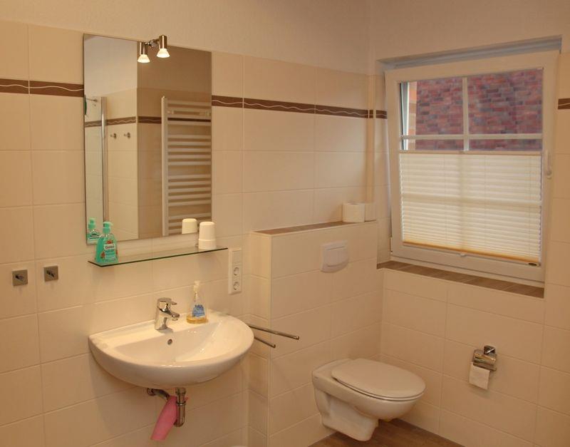 Ein Schlafzimmer und ein großes Badezimmer( bodentiefe Dusche) befinden sich im EG. Zwei weitere Schlafzimmer und ein Dusch- Bad befinden sich im OG. Im OG befindet sich Laminatboden. Die Fenster sind mit elektrischen Rollläden ausgestattet.