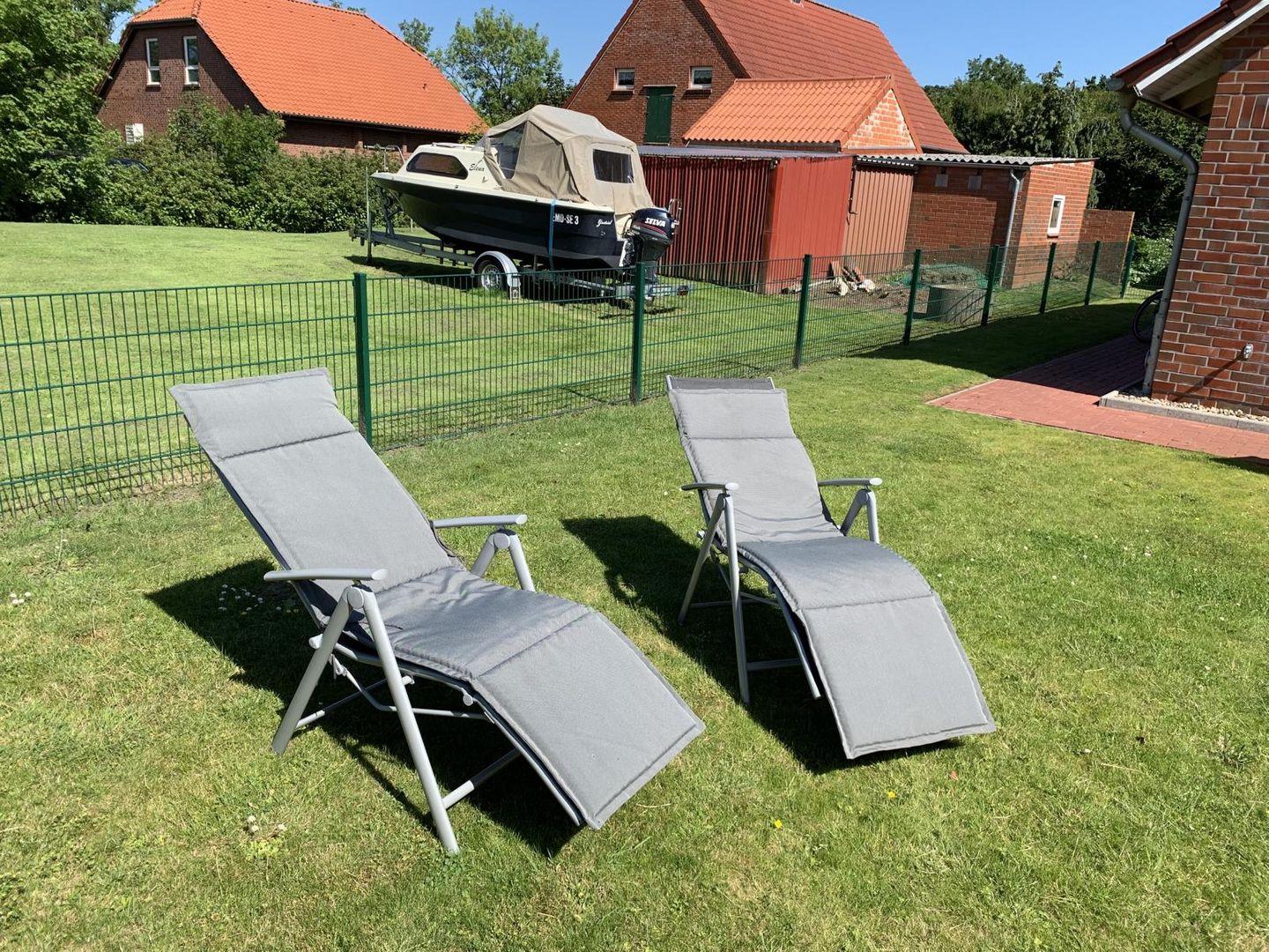 Die Terrasse ist mit Mobiliar ausgestattet. Der Garten ist umzäunt.