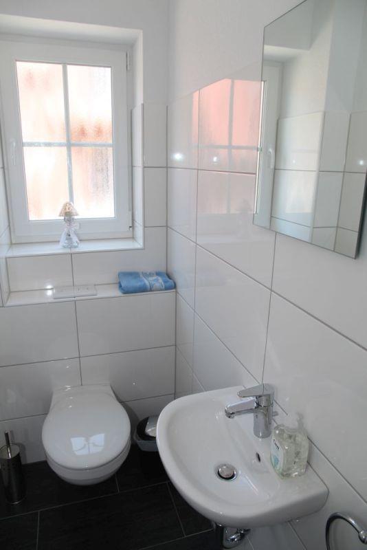 Das moderne Bad ist mit barrierefreier Dusche ausgestattet, ein Fön ist auch vorhanden.