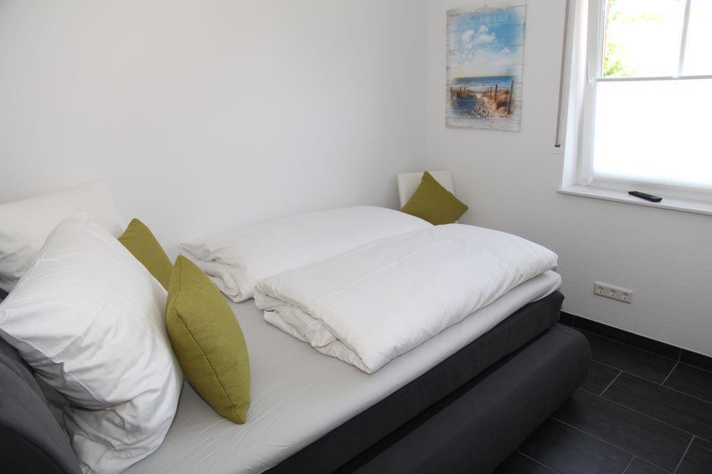 Es gibt zwei gemütliche Schlafräume mit 'Boxspring-Doppelbetten' (einmal 1,60 m Breite, durchgehende Matratze und einmal 1,80 m ebenfalls durchgehende Matratze) und TV. Die Schlafzimmer verfügen über Außenjalousien.