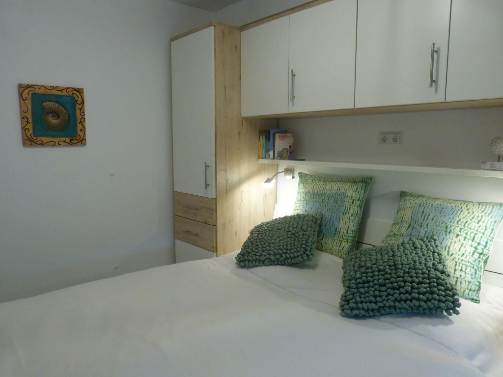 Die Ferienwohnung Nautilus verfügt über 2 Schlafzimmer, wovon eines mit einem Doppelbett in Komforthöhe ausgestattet ist, hier befindet sich auch der zweite Fernseher. Im zweiten Schlafzimmer stehen zwei Einzelbetten (0,90 x 2,00 m) bereit. Für Ihren Schlafkomfort sind in beiden Räumen Verdunklungsplissees vorhanden.