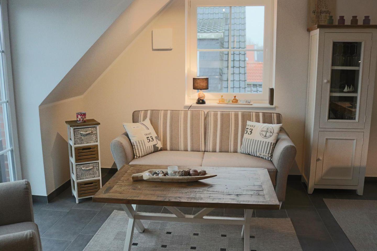 Ankommen und sich wohlfühlen – das Motto dieser stilvollen 65qm Ferienwohnung für 4 Personen mit maritimen Charakter in toller Lage von Greetsiel.