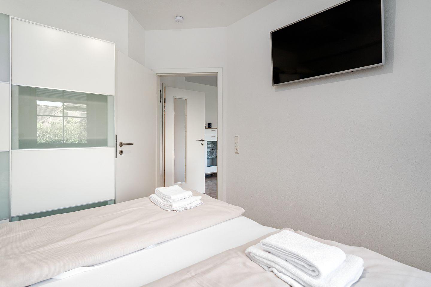 -einer mit Doppelbett (1,80 m x 2,00m), Kleiderschrank und TV,