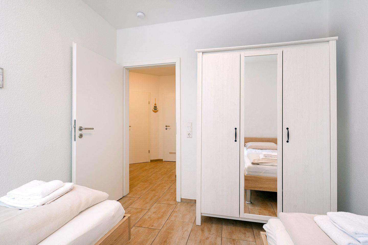 -ein zweiter mit zwei Einzelbetten (je 0,90m x 2,00m) und Kleiderschrank.