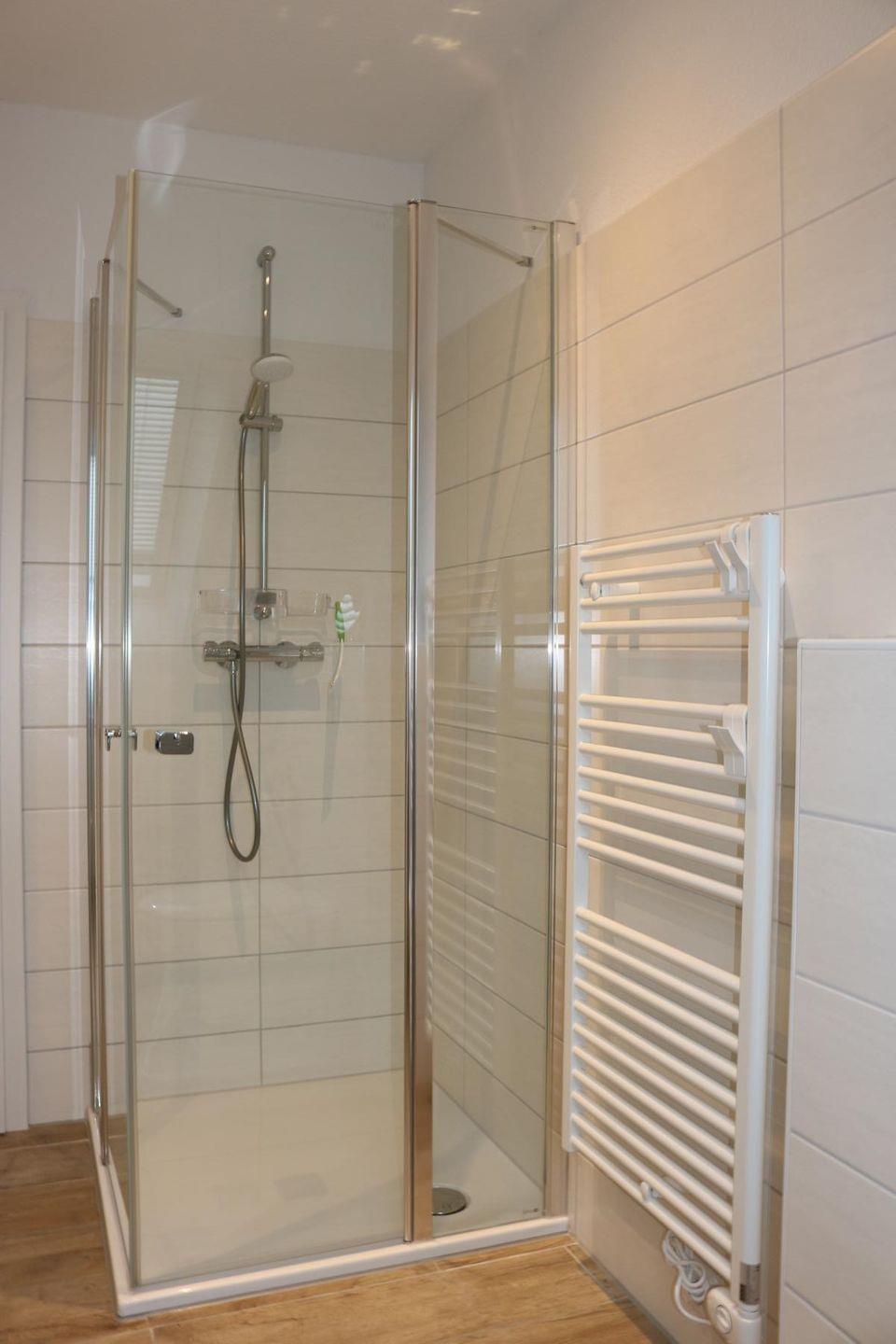 Die Nordseeperle ist gefliest und mit einer durchgehenden Fußbodenheizung ausgestattet, die Fenster verfügen über Plissees, Fliegengitter und Außenjalousien.